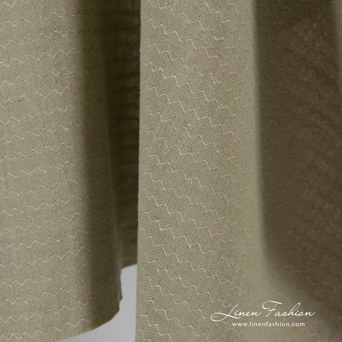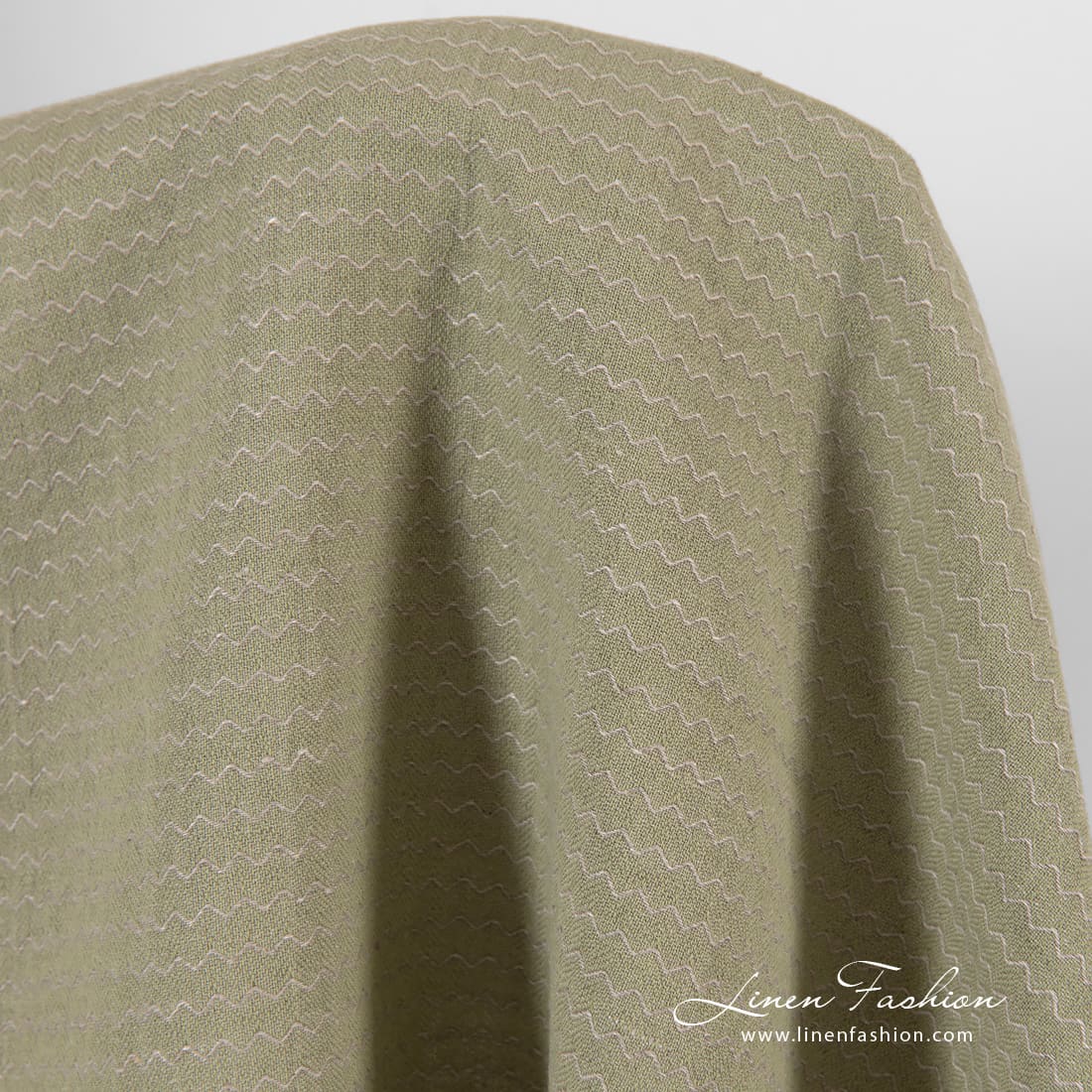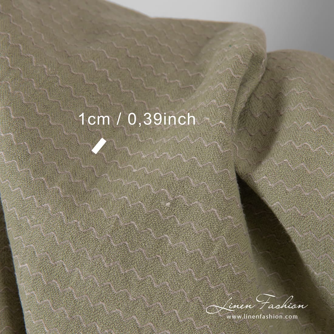 Lin-bomull grønn-grått stoff i bølgemønster vasket