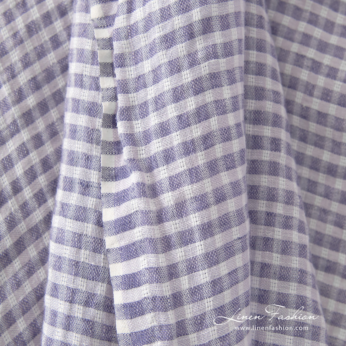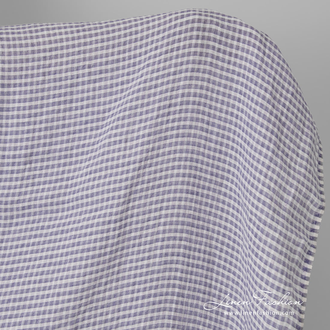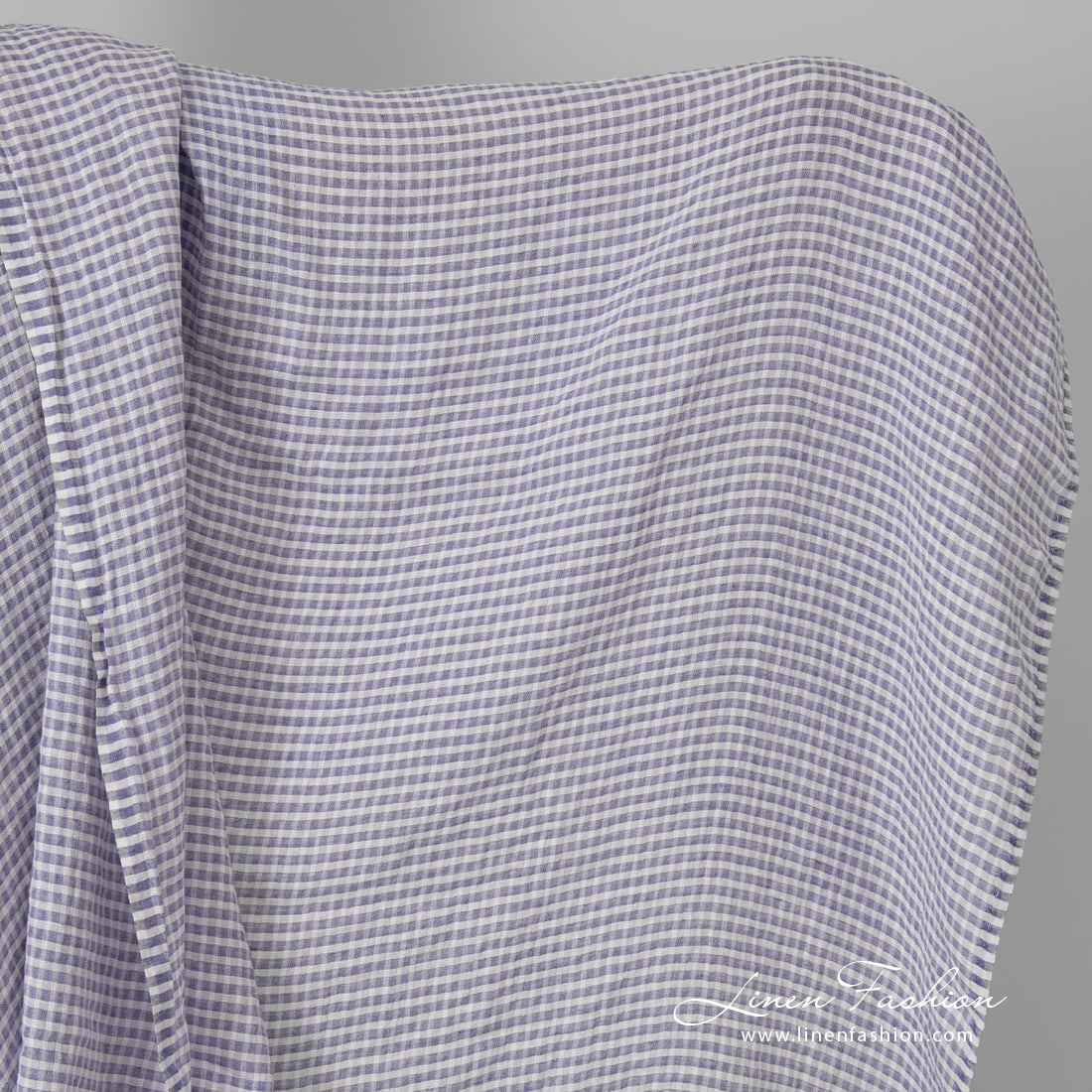Lin fiolett stoff gjennomsiktige ruter vasket