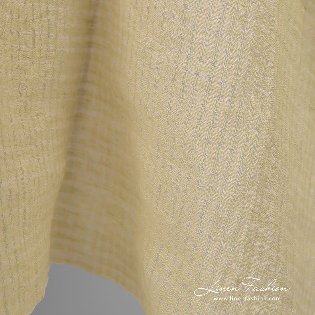 Vasket gult glisvevd rutete linstoff