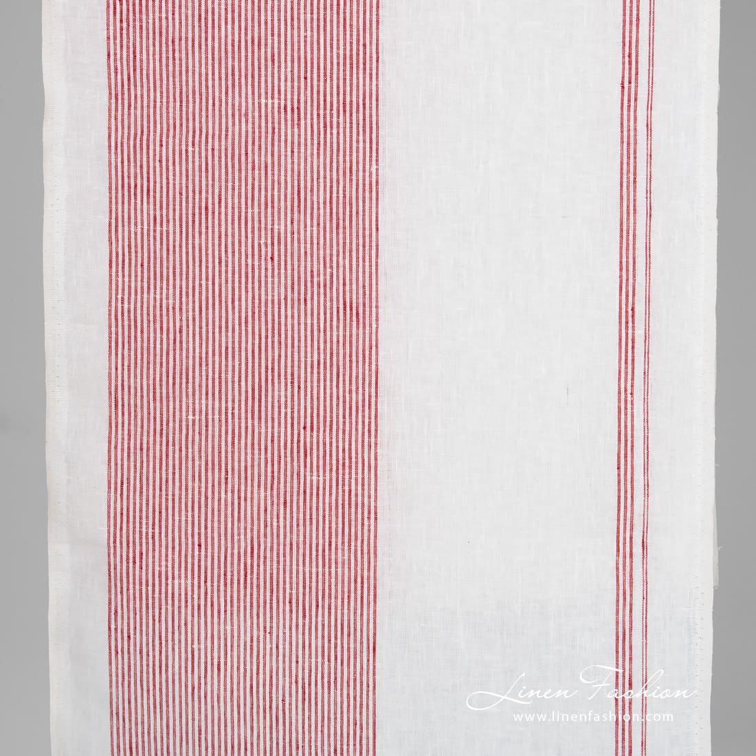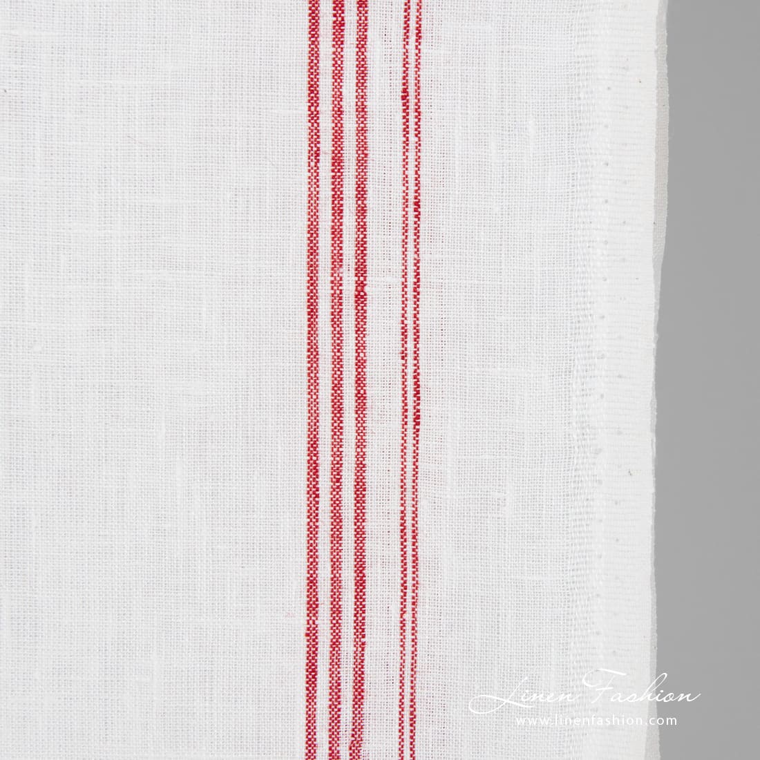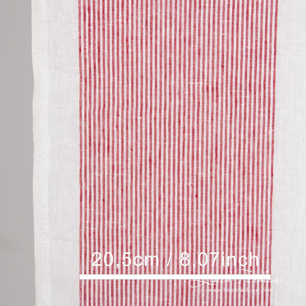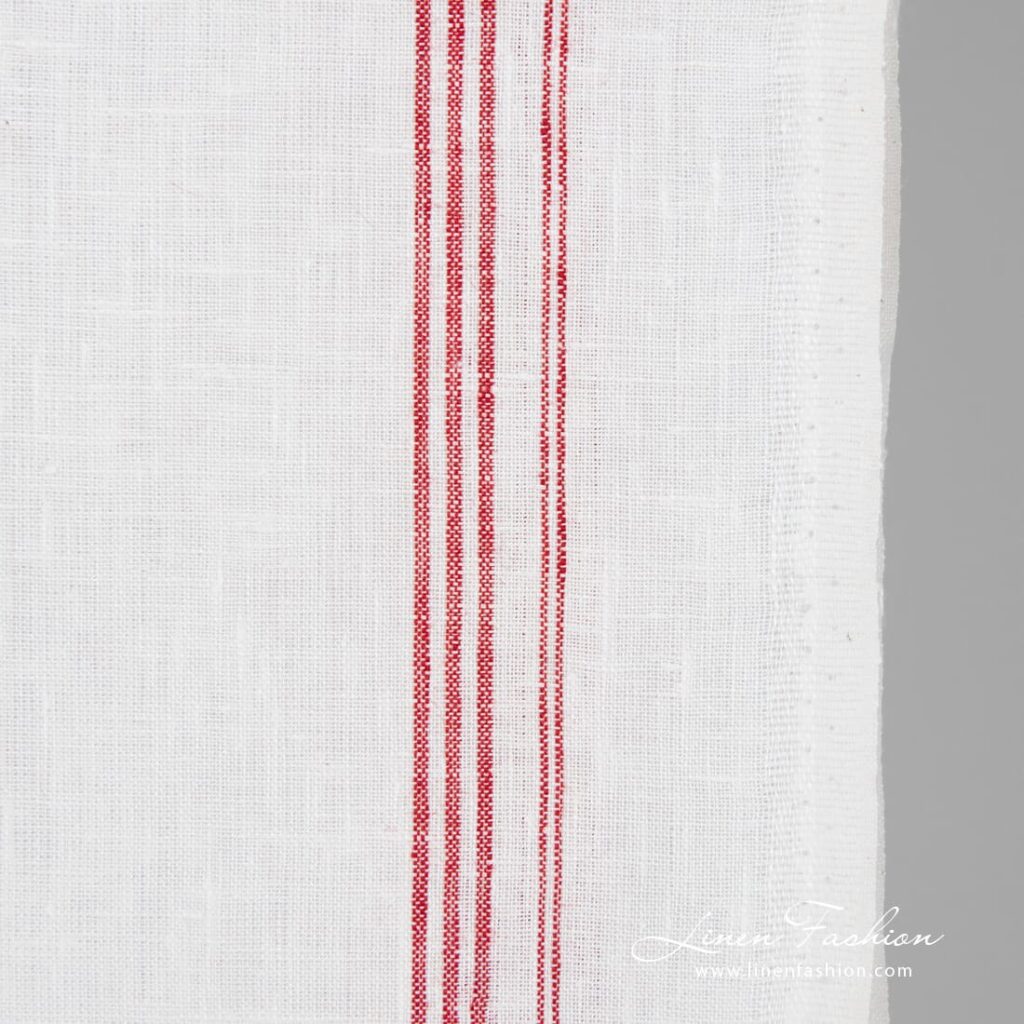 Hvitt linstoff med røde striper