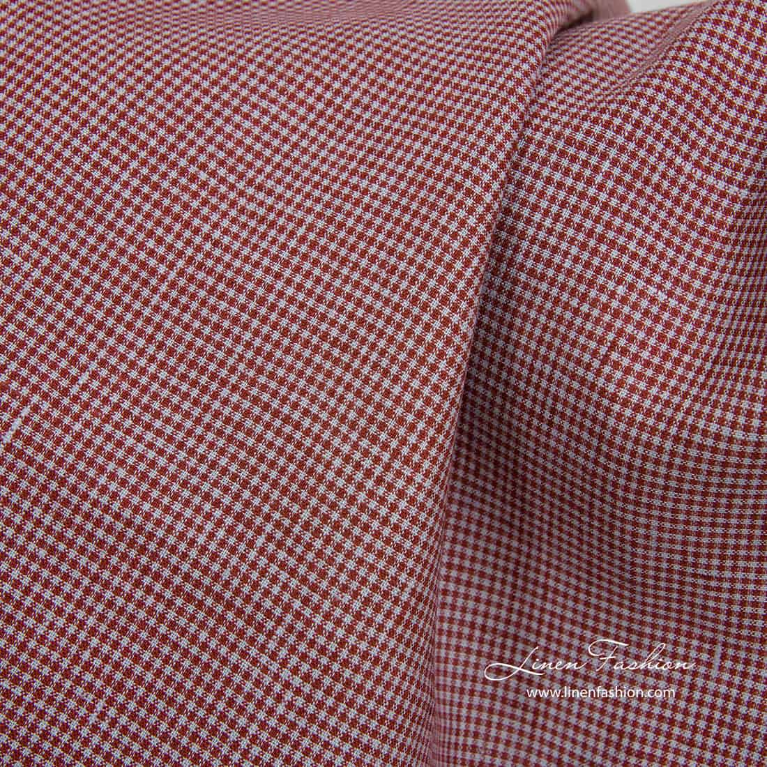 Linstoff i små bordo-grå ruter