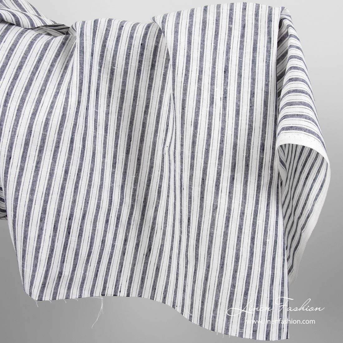 Linstoff med mørkeblå striper