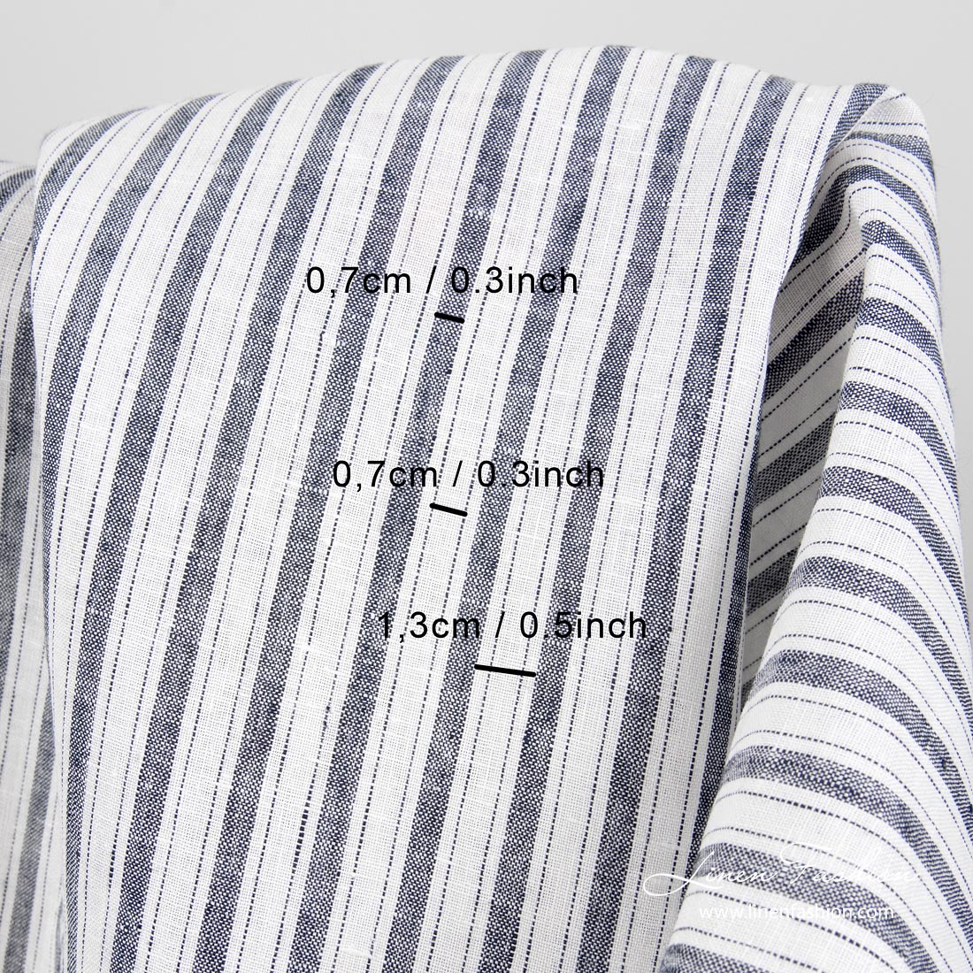 Linstoff med mørkeblå striper antall