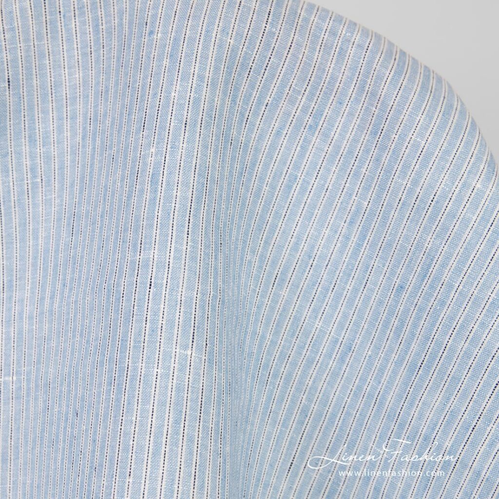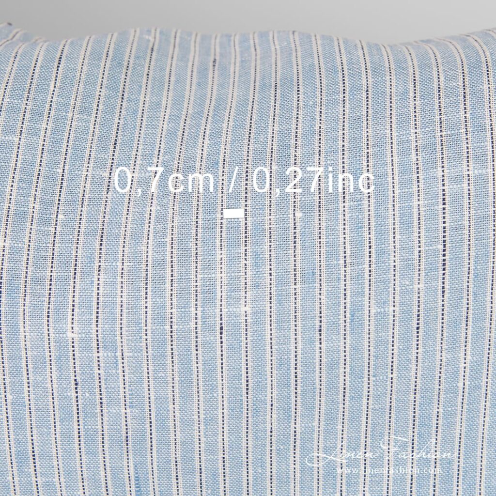 Blått linstoff i striper