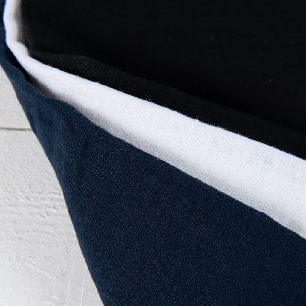 Linstoff i flerfargede striper vasket
