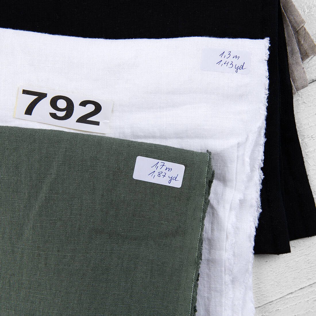 Lin-bomullsstoff lyseblå og kremfarget melange
