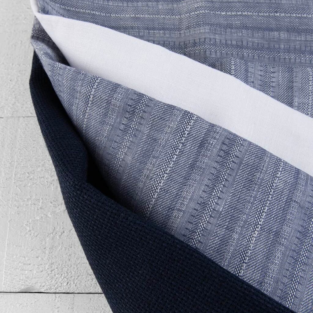 Linstoff i flerfargede striper vasket