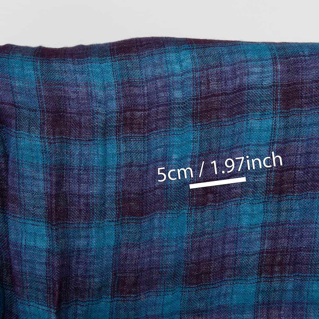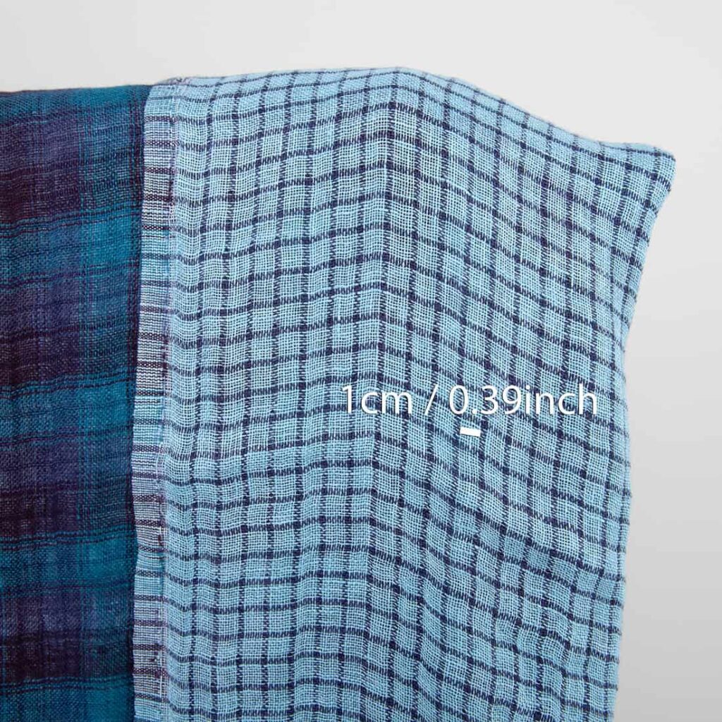 - Farge: blanding av lys turkis, mørk turkis, aubergine og mørk koboltblå farget garn