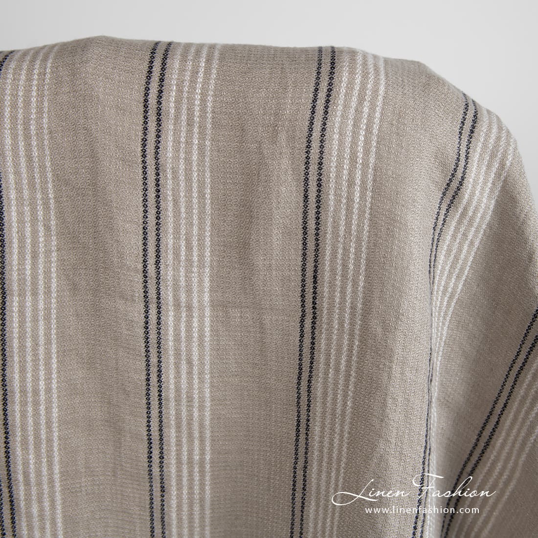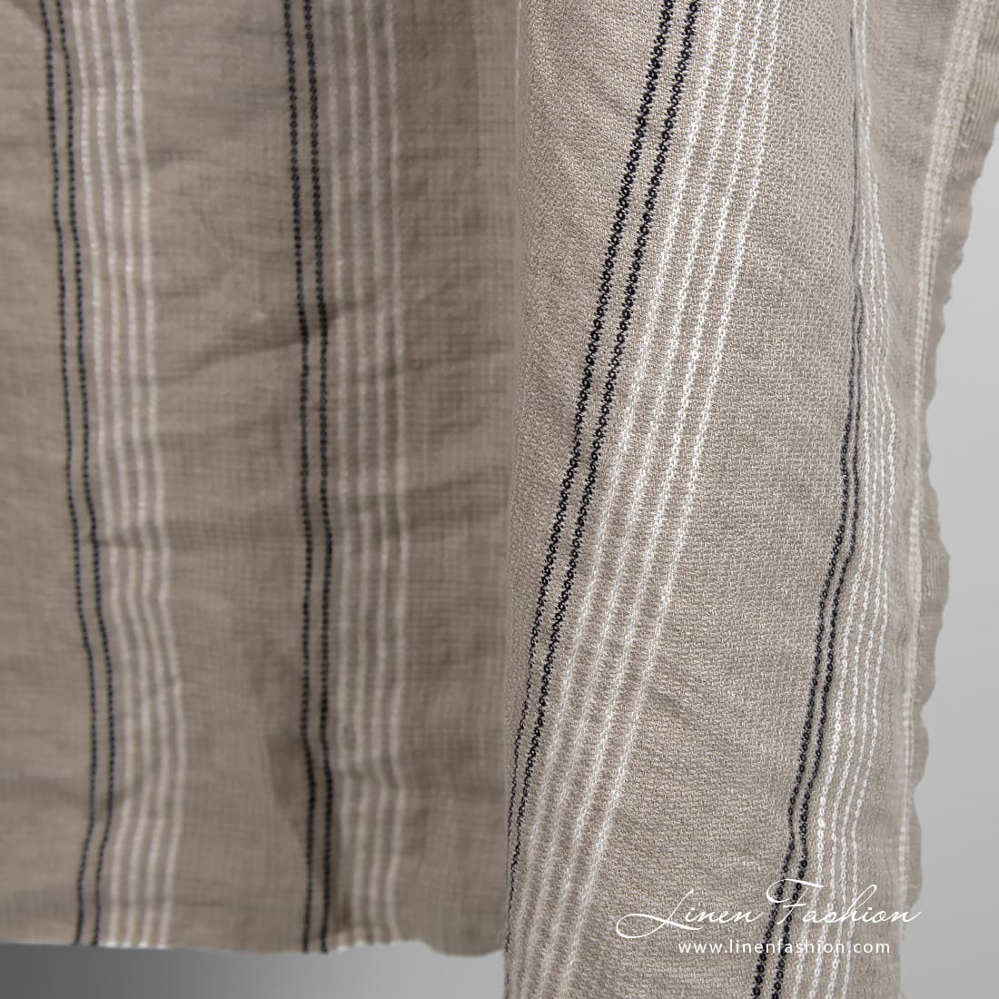 - Mønster: småmønstret dobby, tynne vertikale striper