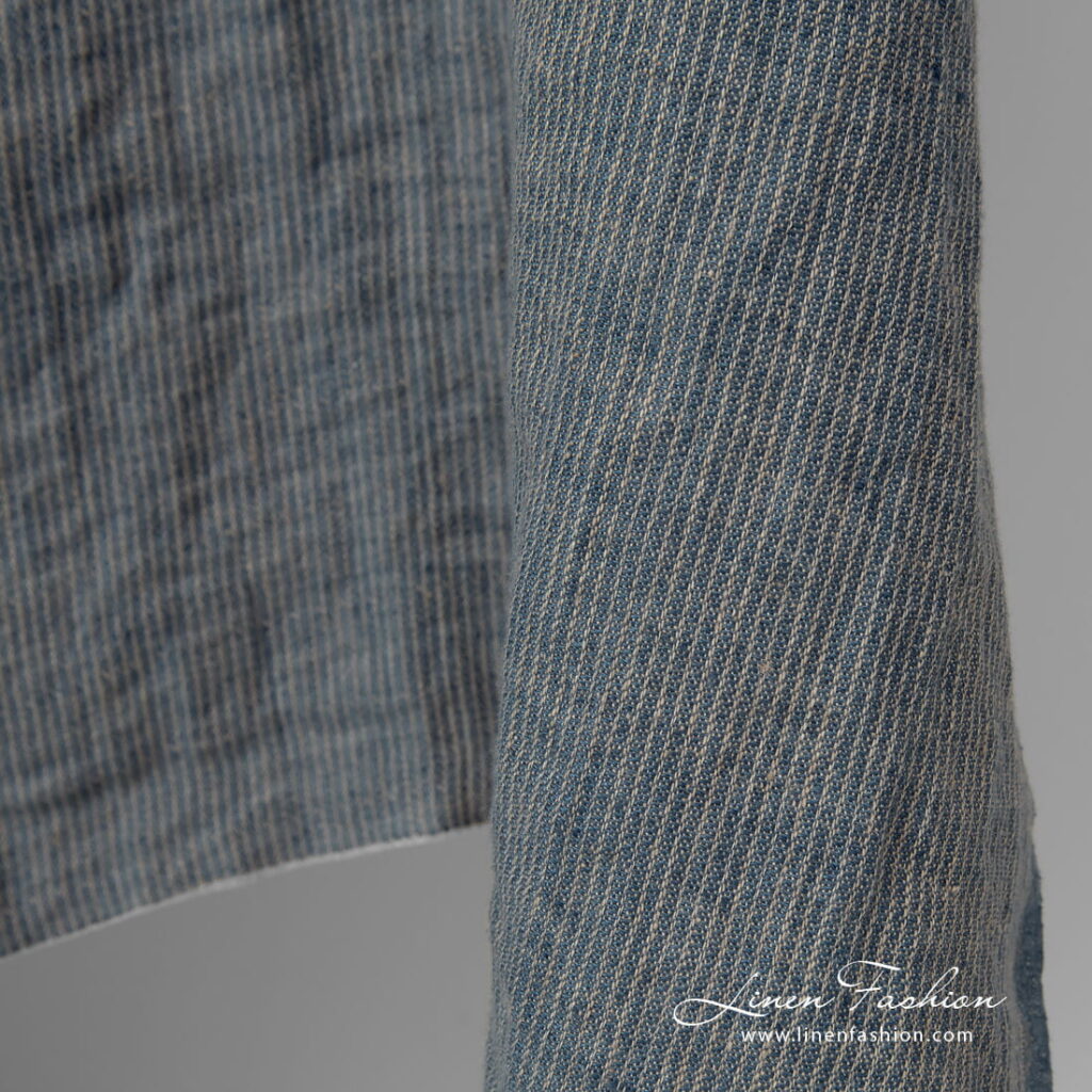 - Farge: blanding av denimblå og brungrå (nær naturlig lin) fargede garn