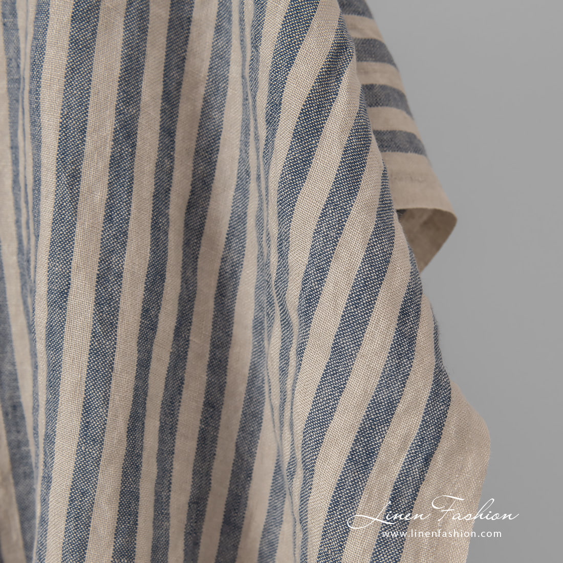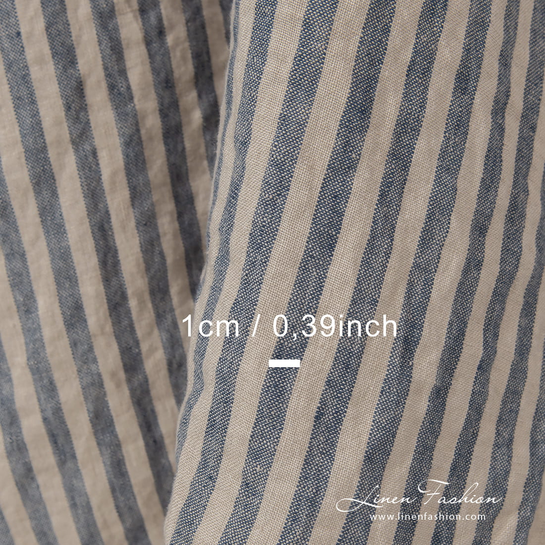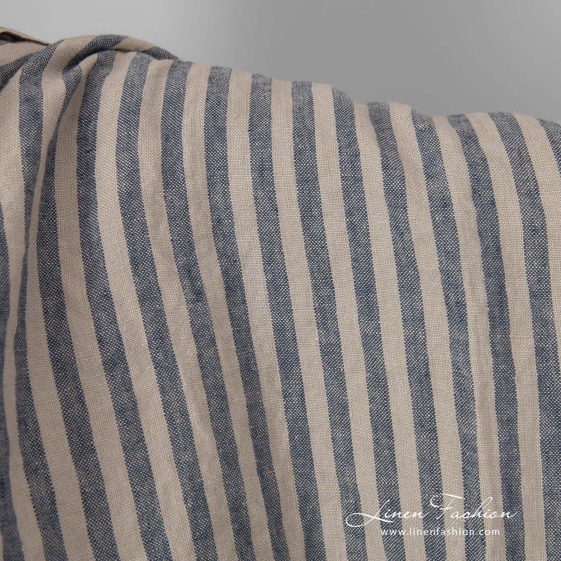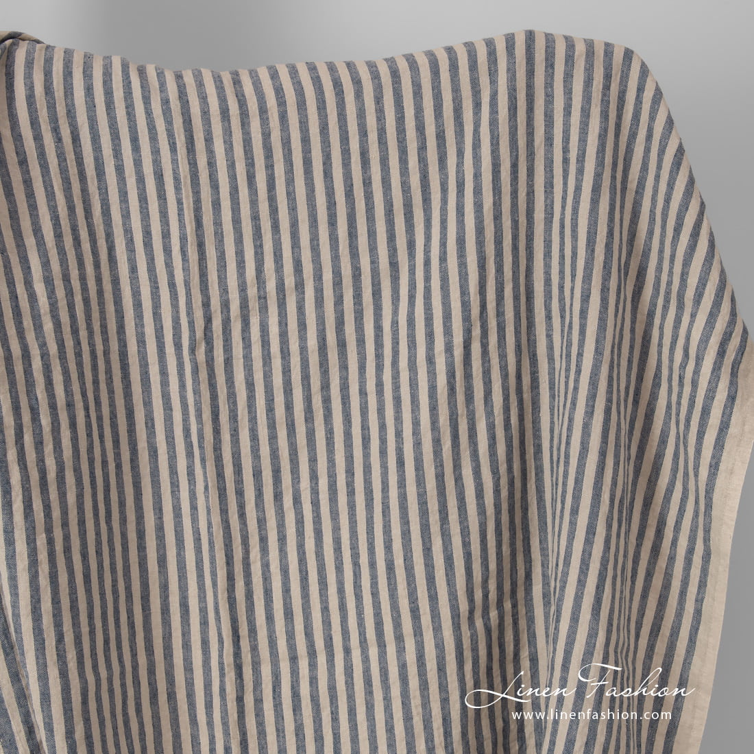 Lin stripet stoff blått vasket