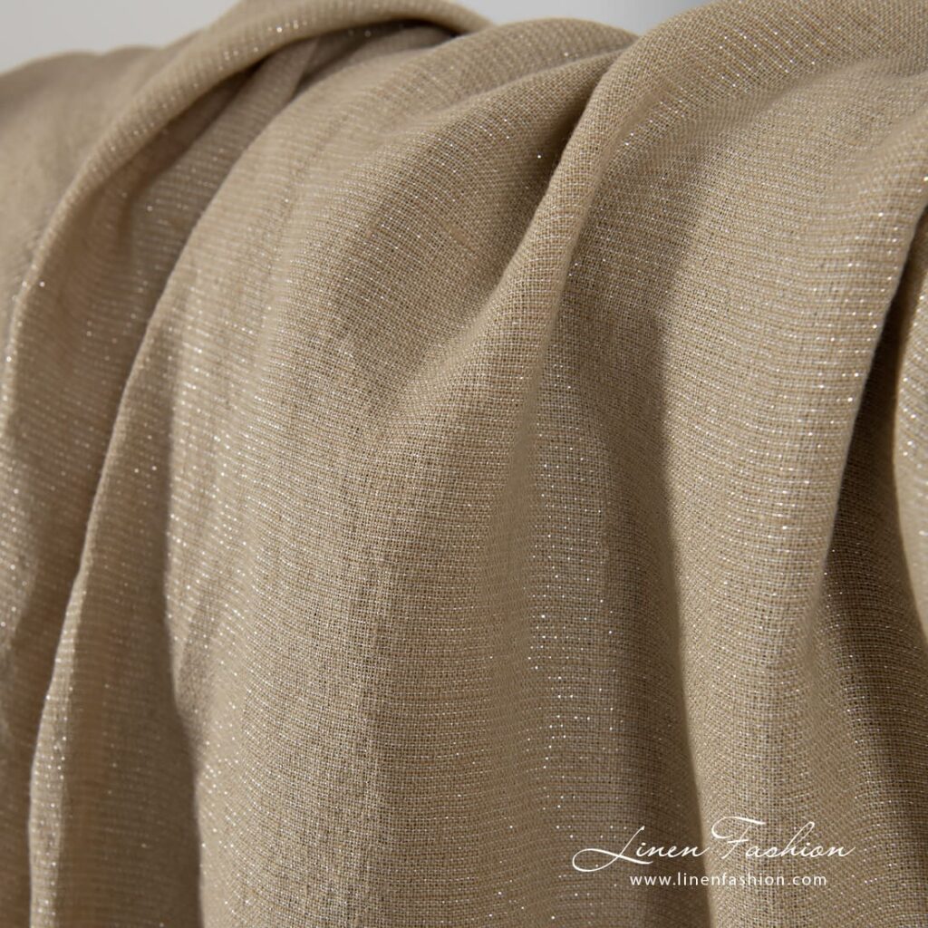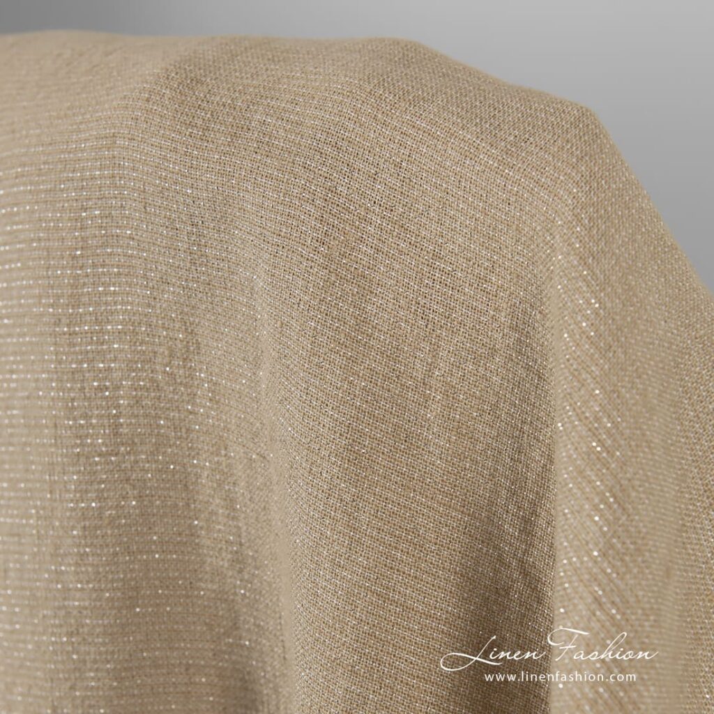 - Farge: mørk sand (middels gulaktig beige) lingarn og metallisk sølv “lurex”-garn
