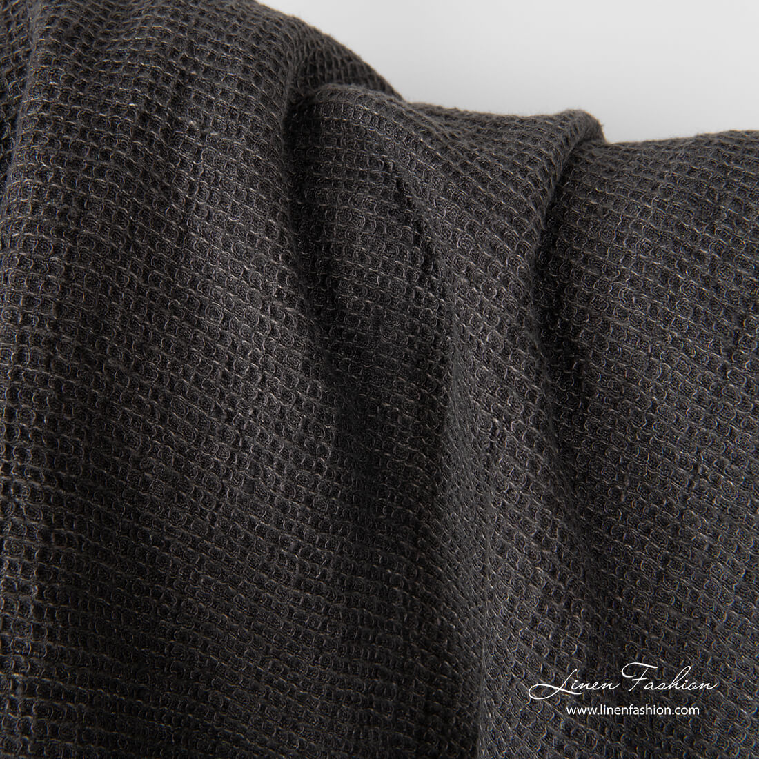 Vasket antrasittgrått vaffelvevd linstoff antall