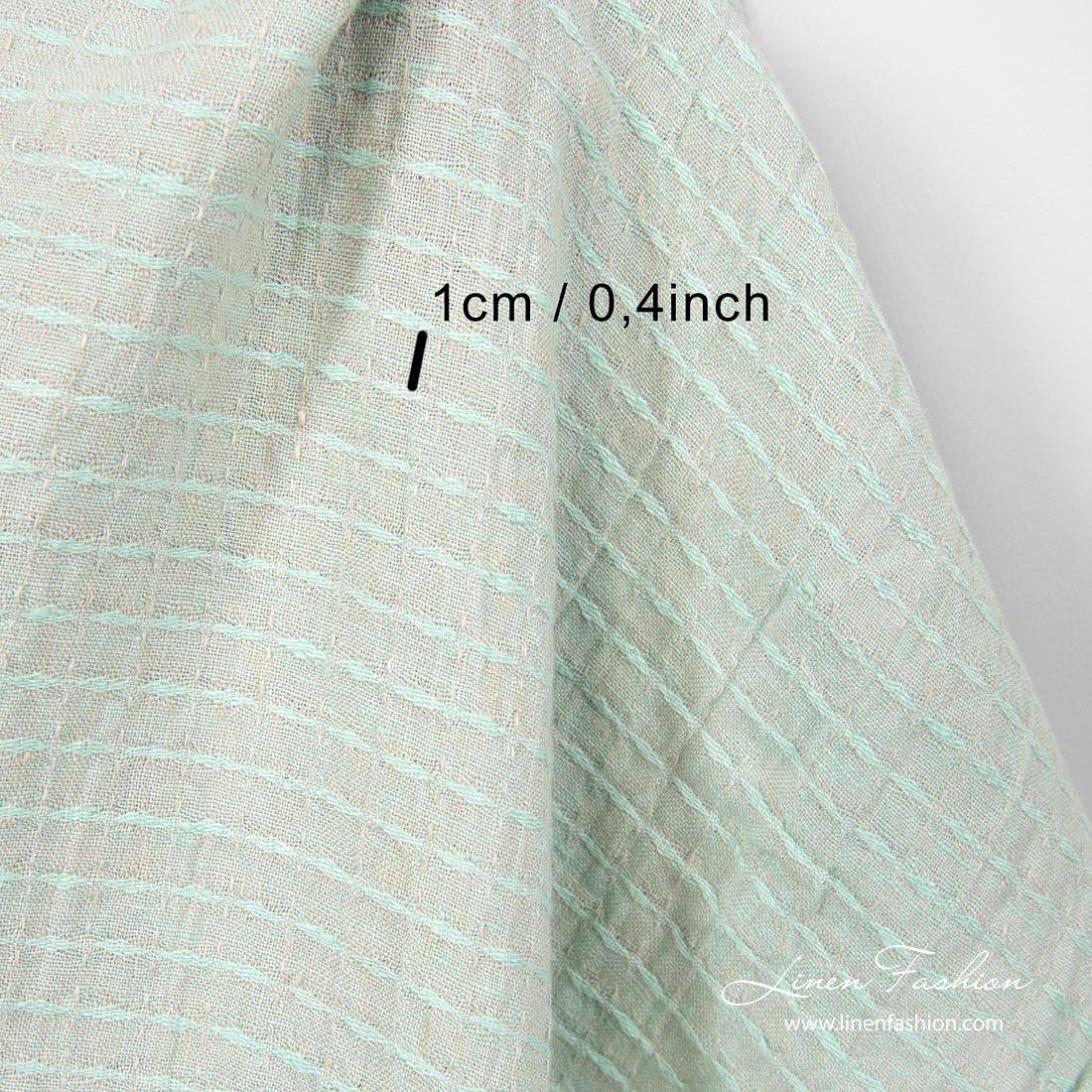 - Mønster: dobbyvev med tykkere prikkete teksturerte ruter