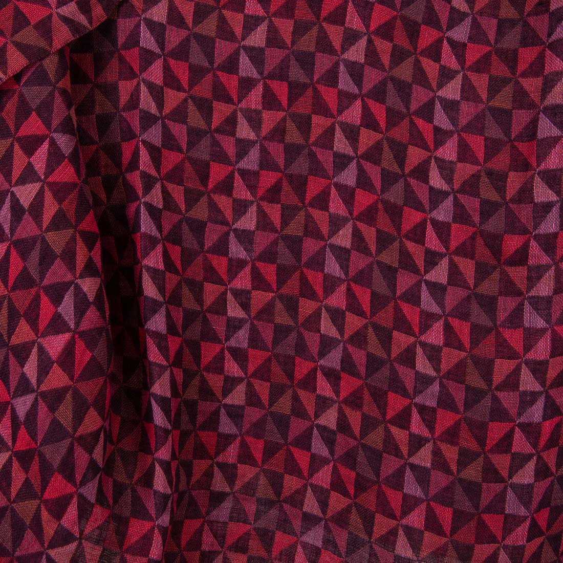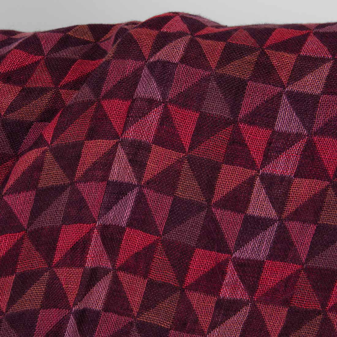 - Farge: blanding av brun-fiolett, aubergine, rød, teglrød, lys rødbeterød og bringebærrød fargede garn