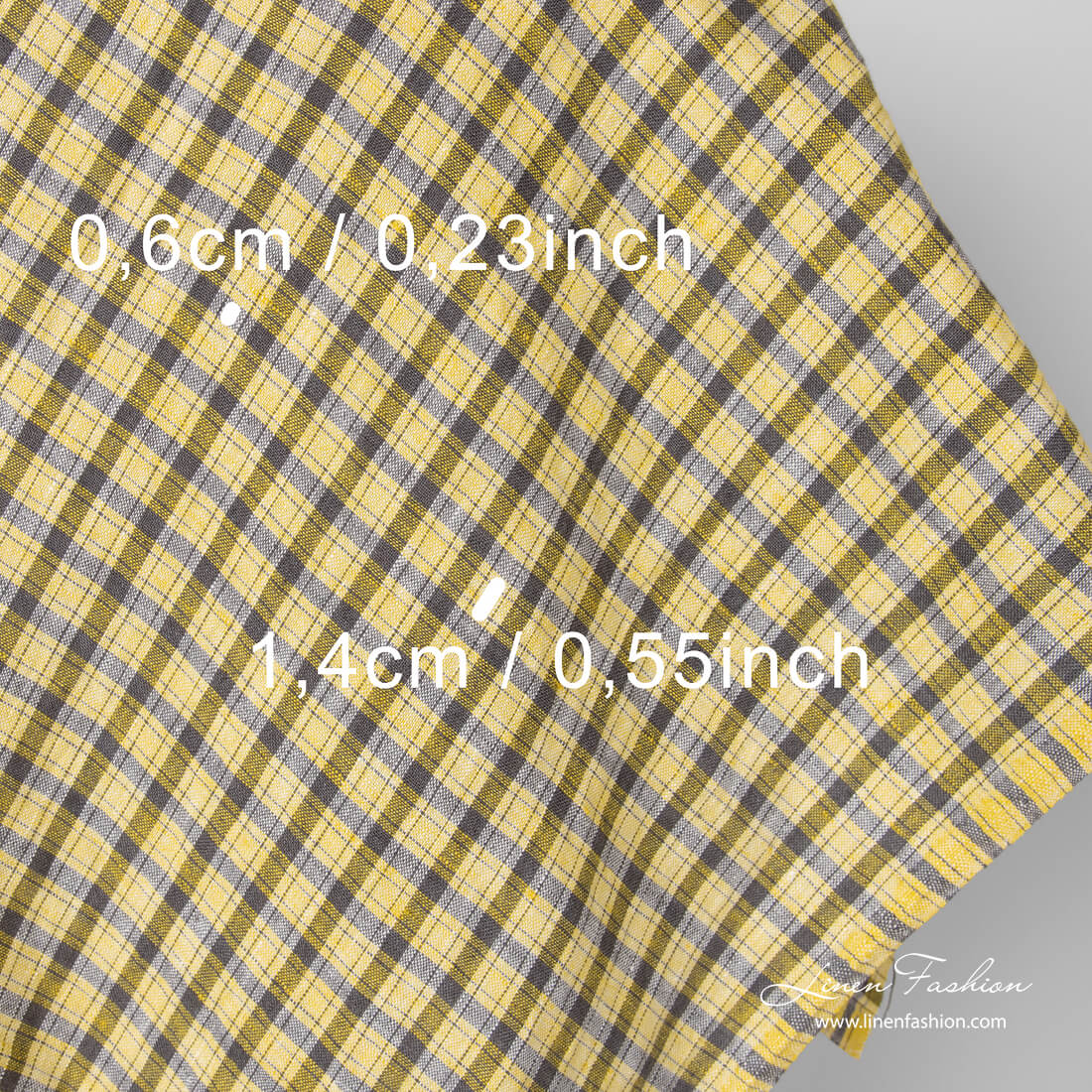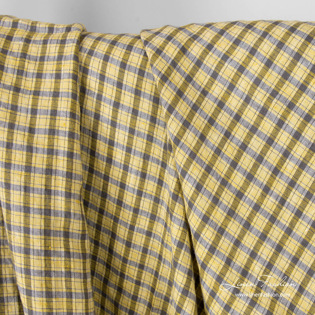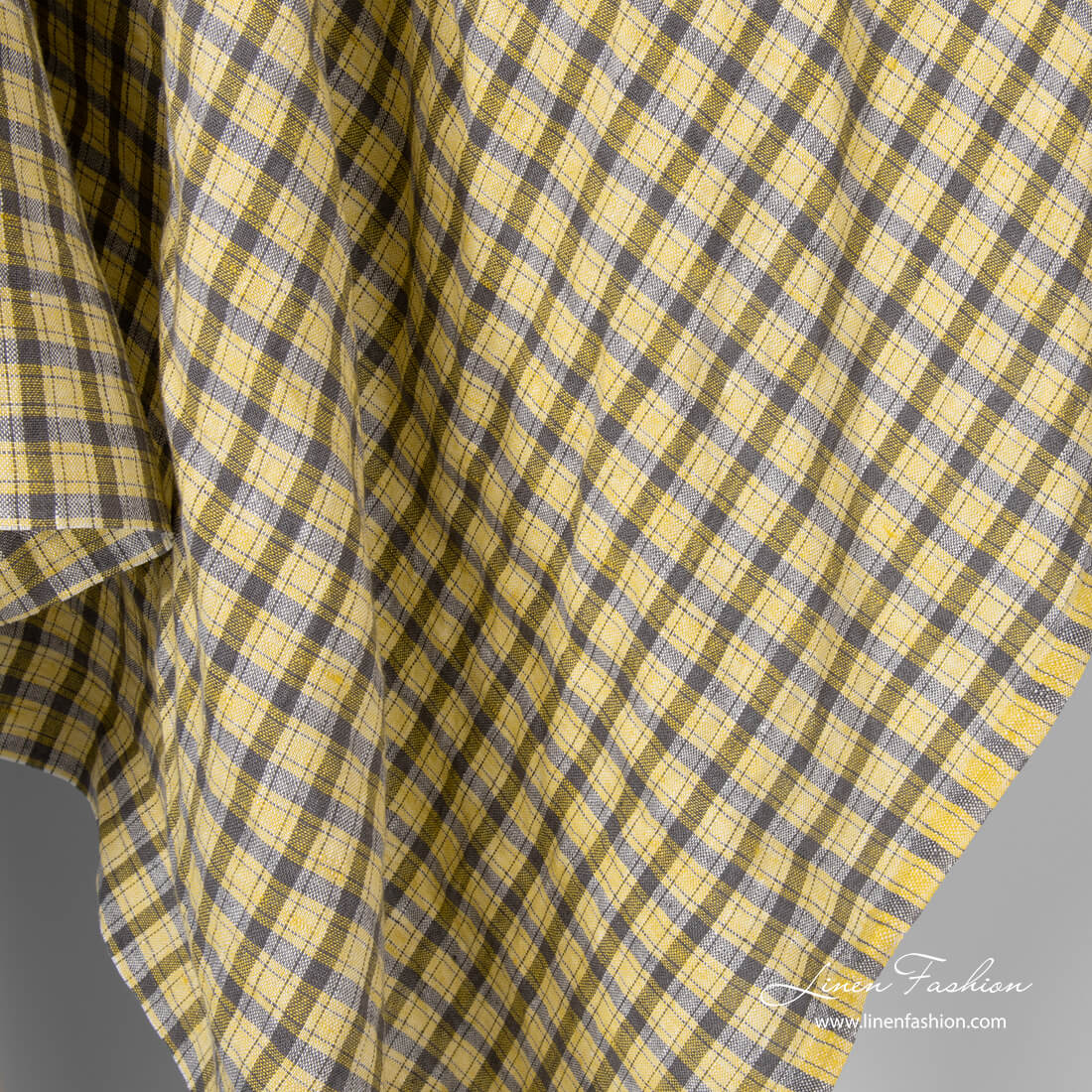 Linstoff tosidig brune og leirefargede ruter, vasket