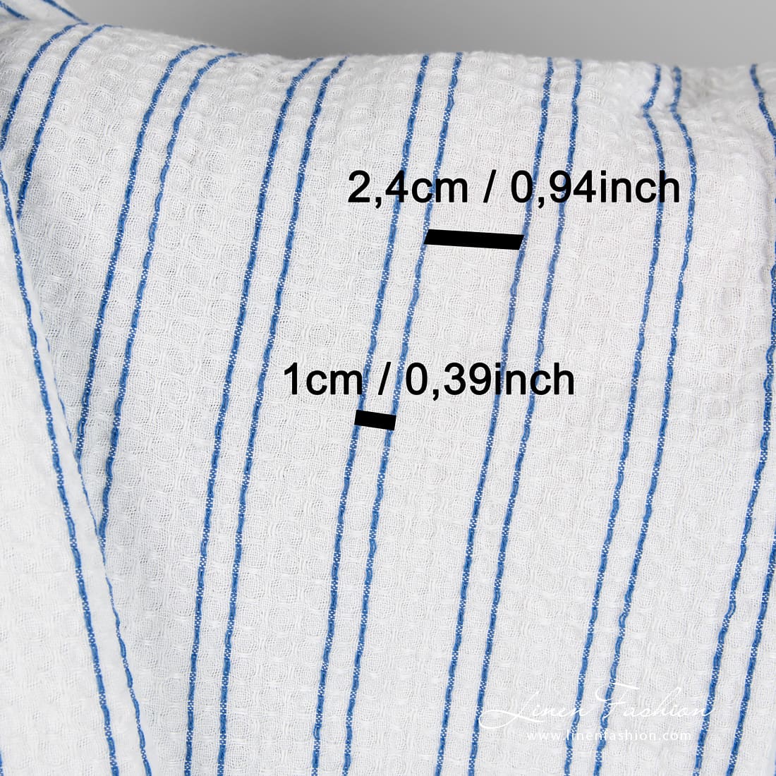 - Farge: blanding av off-white (gulhvit) og blått garn