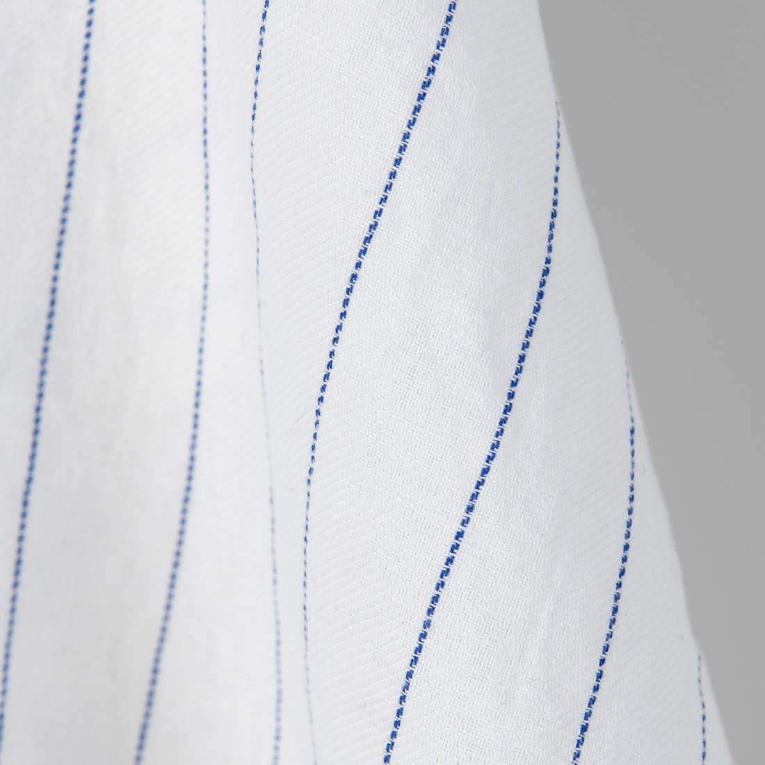 Vasket lin-bomullsstoff hvitt med blå striper twill antall