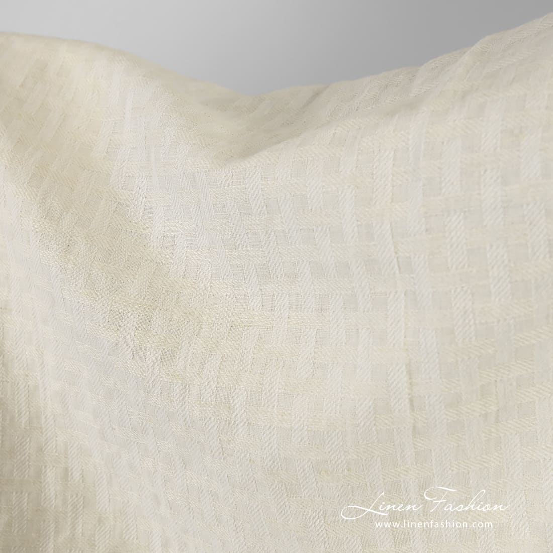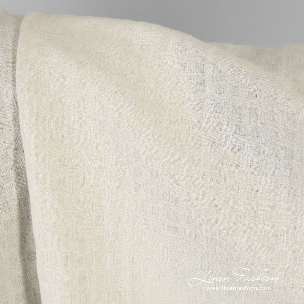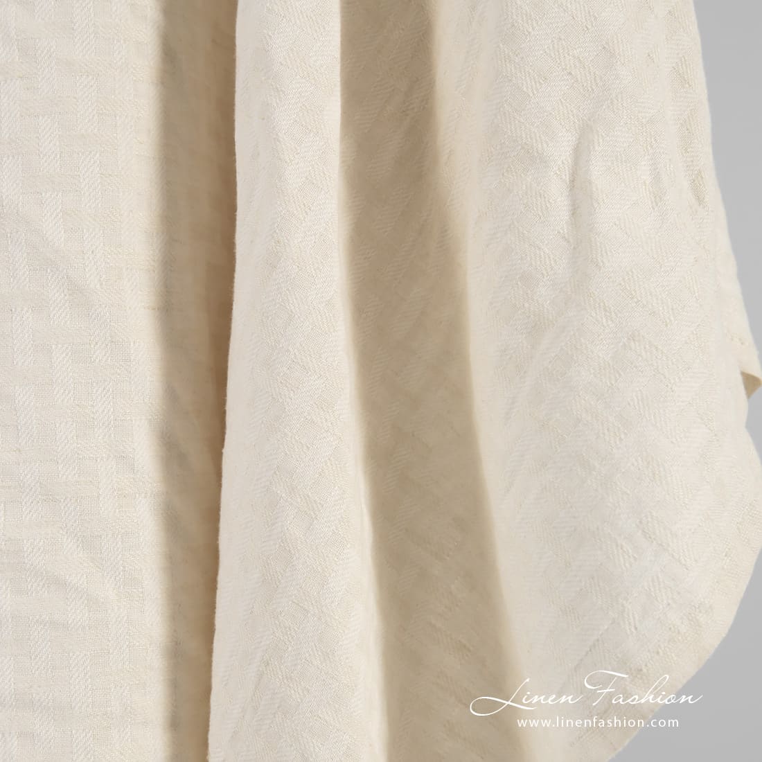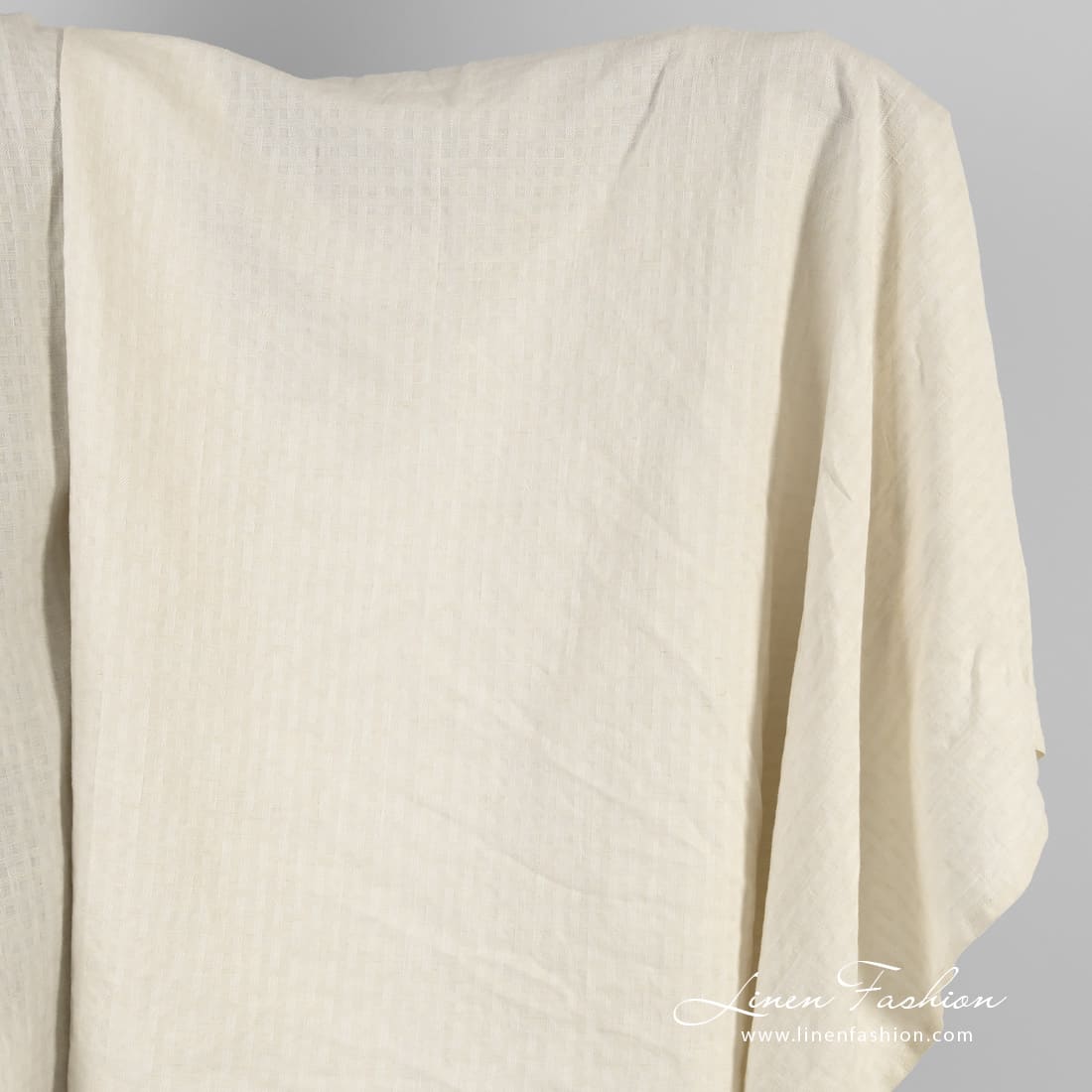 Lin-bomullsstoff beigegrå vaffelvevd vasket