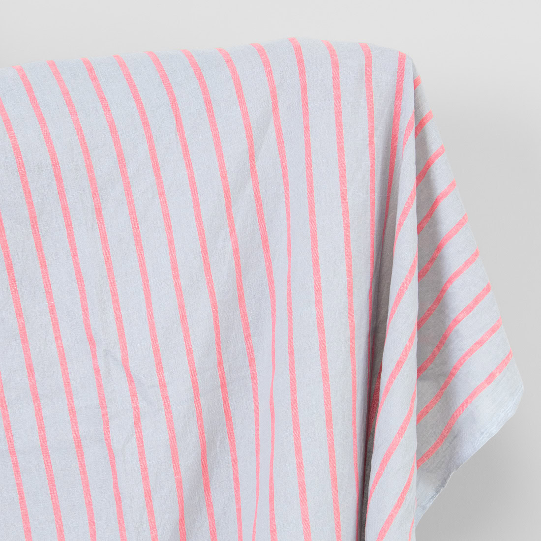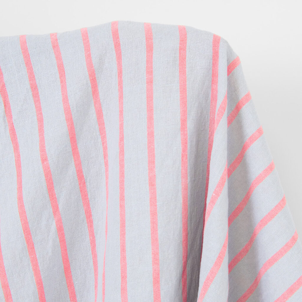 Lin-bomullsstoff lys grå med klare røde striper, vasket antall