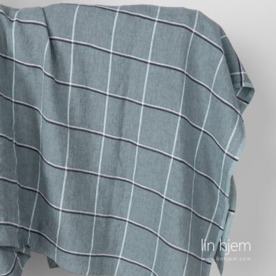 Hvitt gjennomsiktig vasket linstoff med grå striper