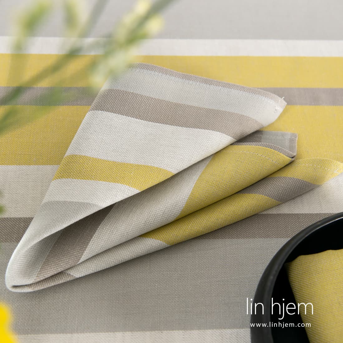 • MIMOSA grå-gul stripete lin-bomull serviett