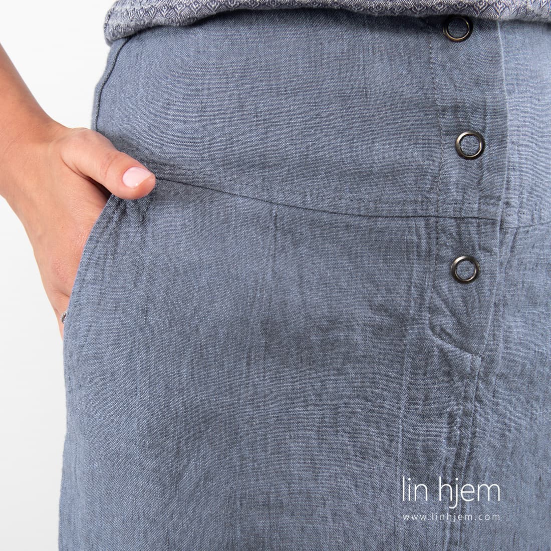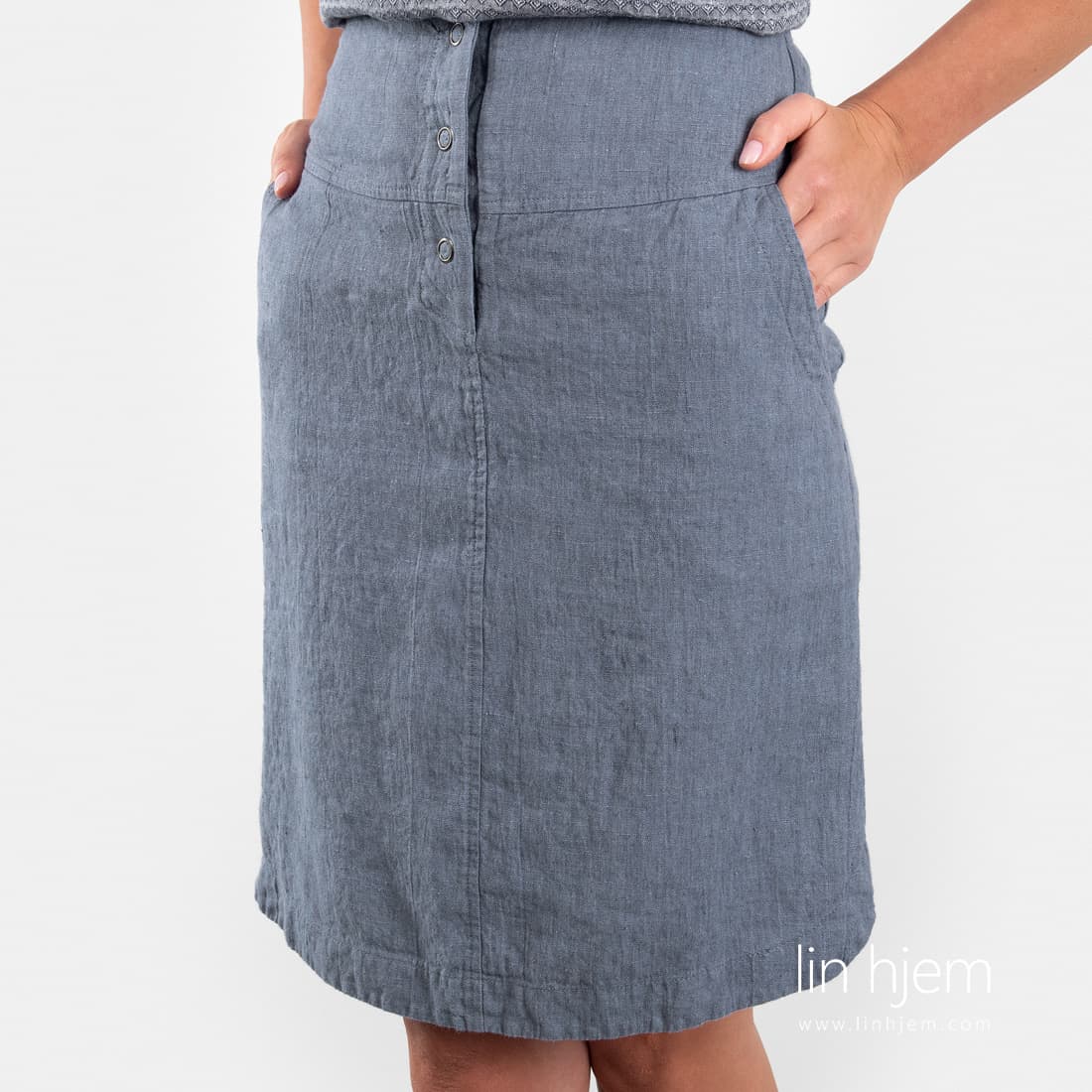 - Skjørtet er laget av spesielt vasket 100% linstoff som er mykt, skånsomt og behagelig mot huden.