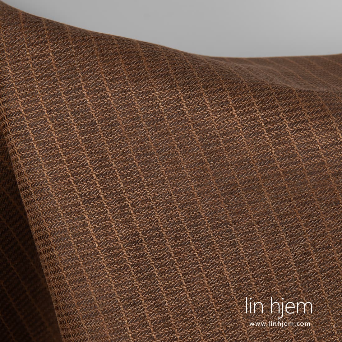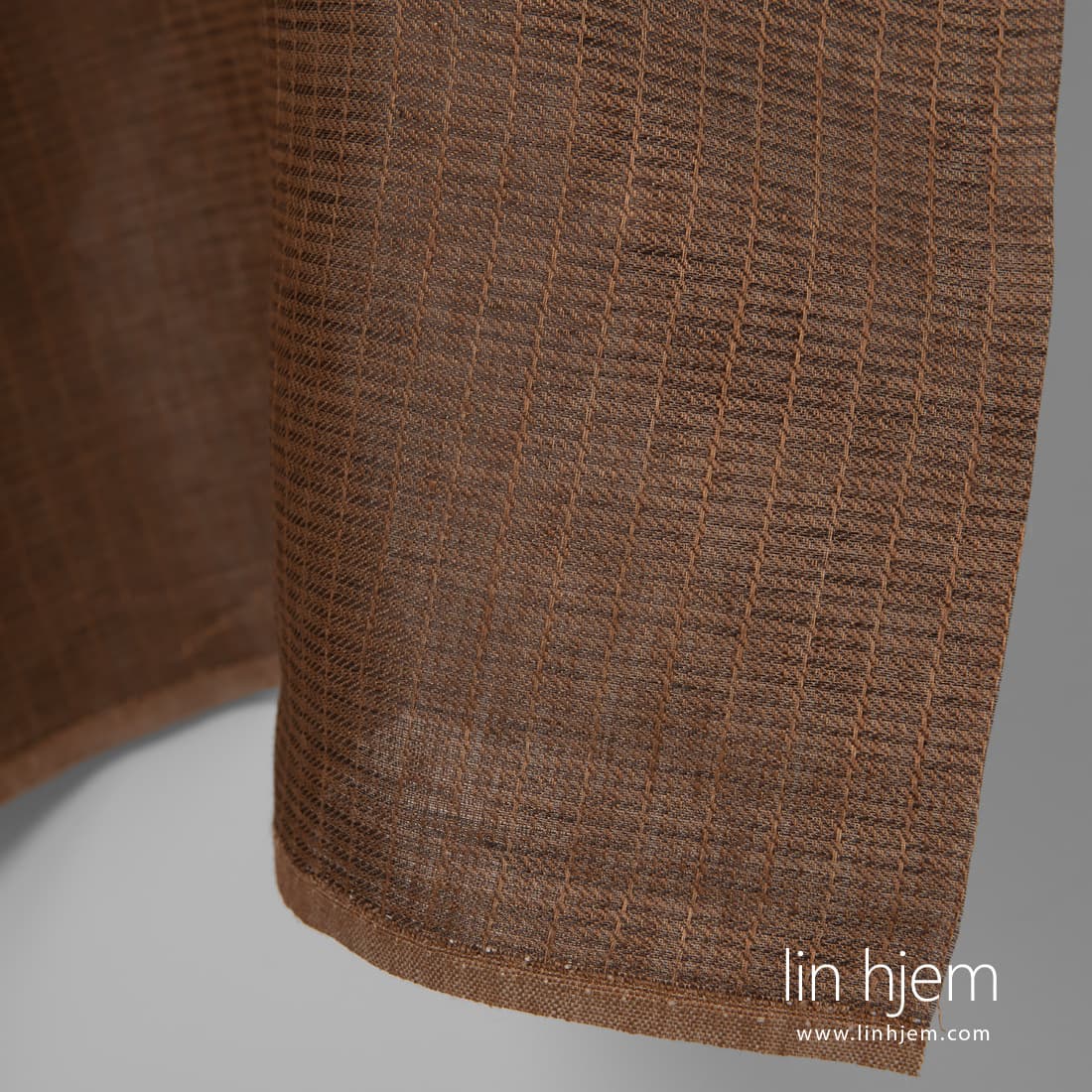 Mønstret brunt linstoff vevd av mørkebrune-grå og lysebrune garn. Tettvevd, holdbart, middels tykkelse. Sy klær og hjem tekstil produkter.