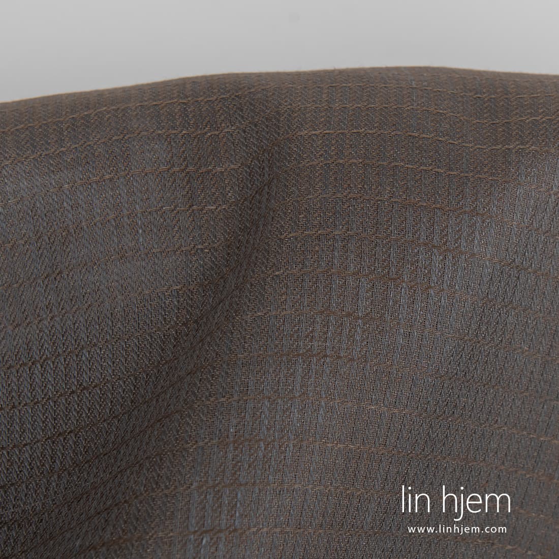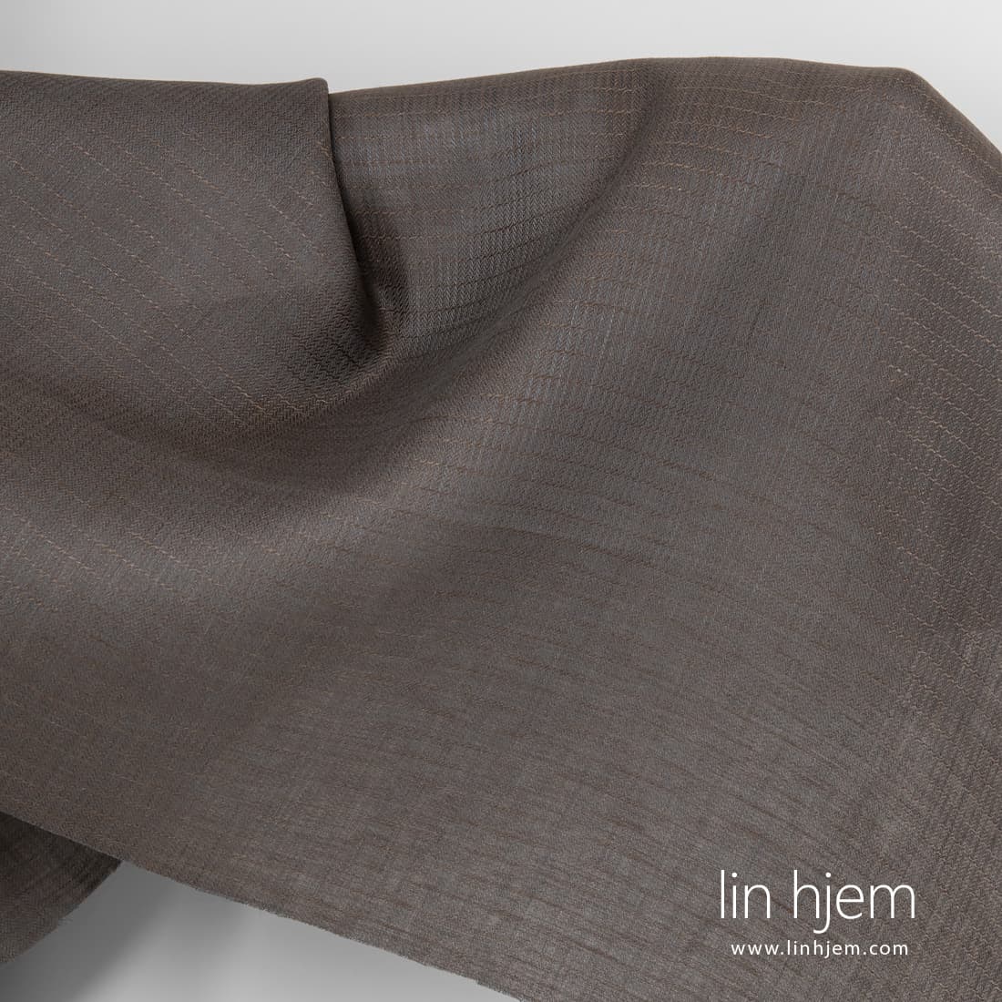 Mønstret grått-brunt linstoff som er tettvevd, holdbart, middels tykkelse. Passer til å sy forskjellige hjem tekstil produkter, klær.