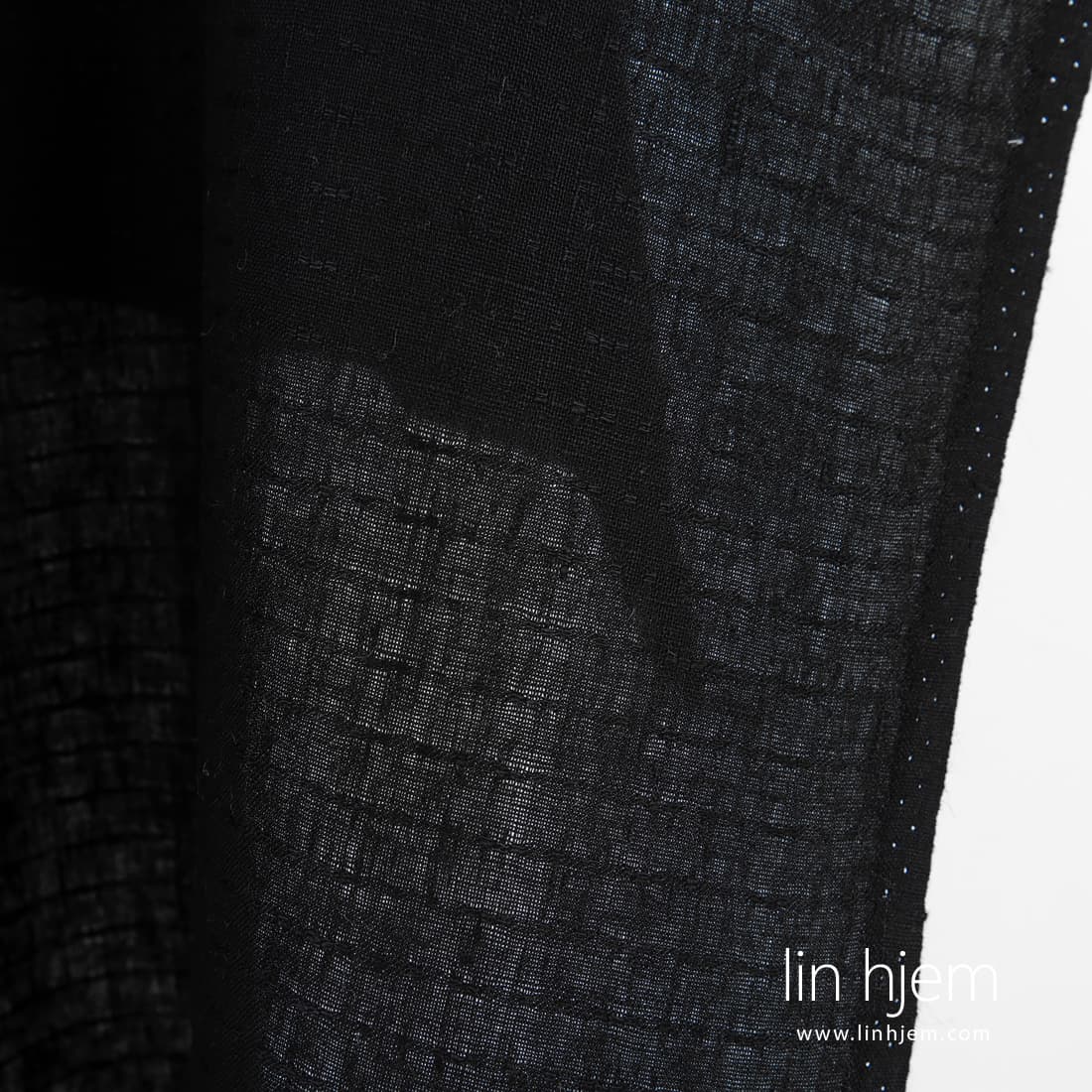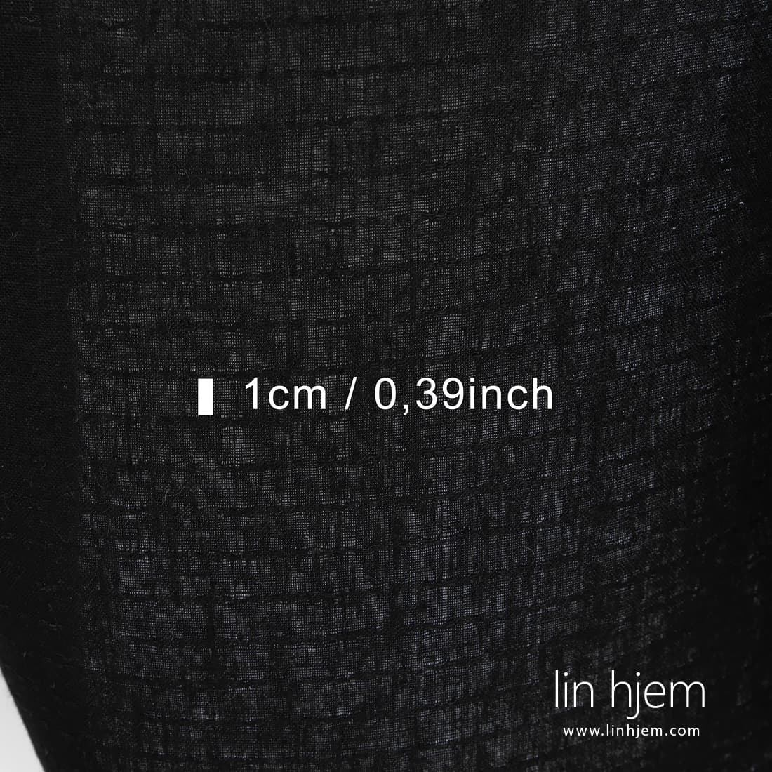 • Mønstret linstoff i svart farge.
