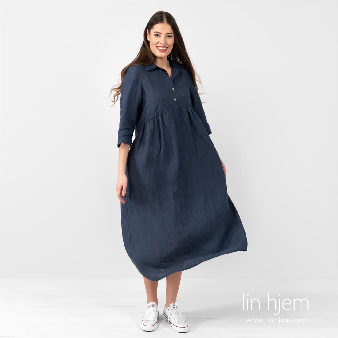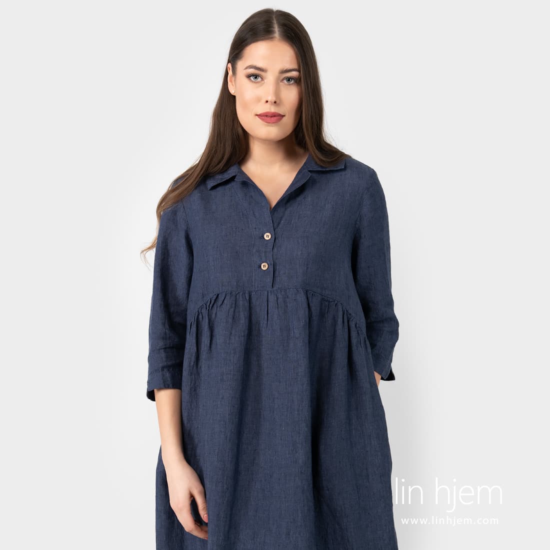 - Detaljer: knapper i front, rynket under brystet, 3/4 ermer, lommer