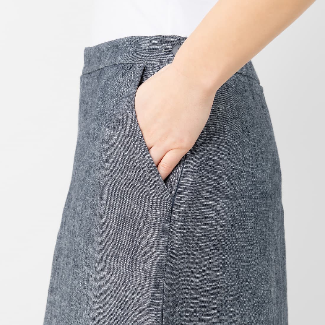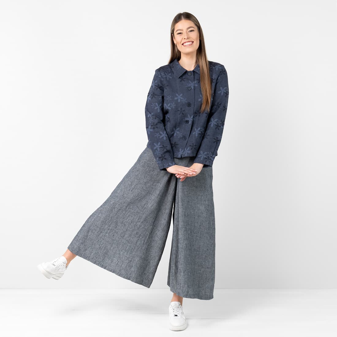 - Detaljer: lommer, glidelås- og knappelukking i siden, strikk i midjen bak
