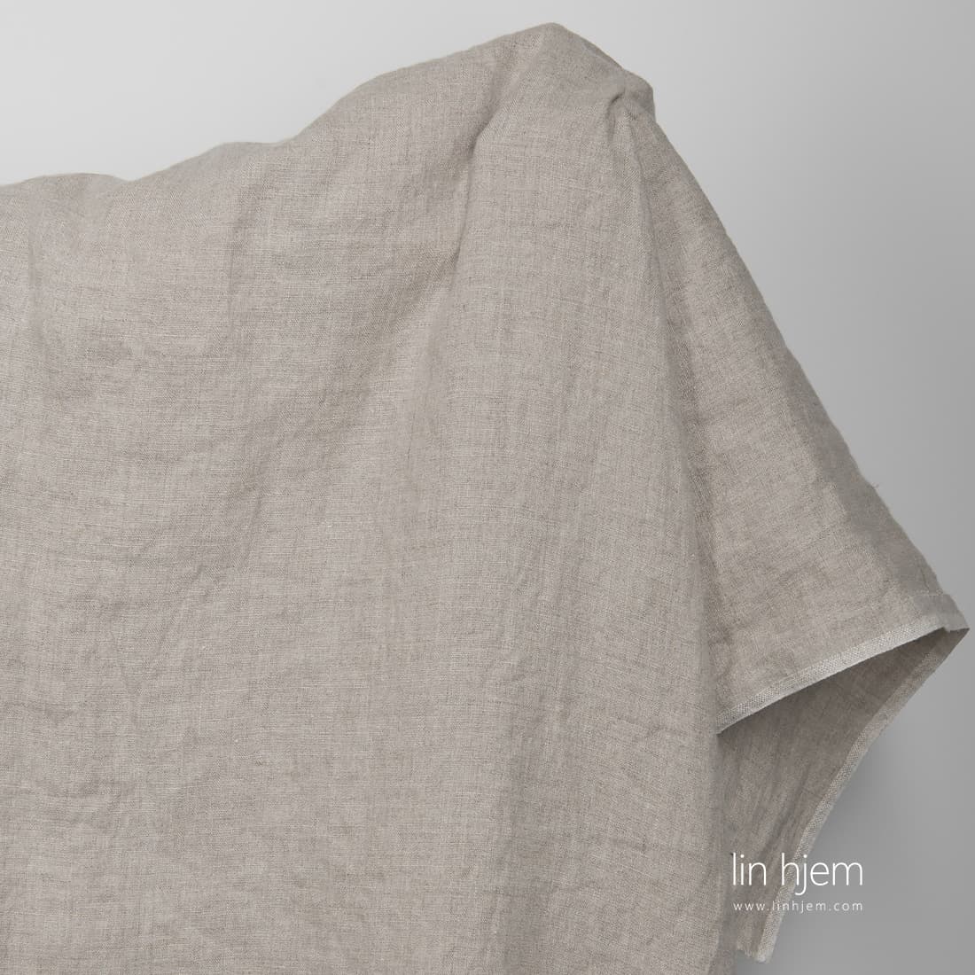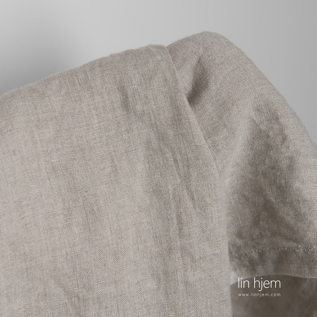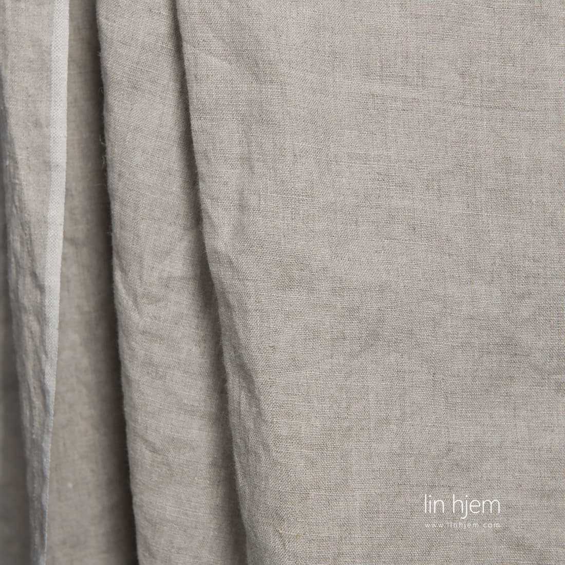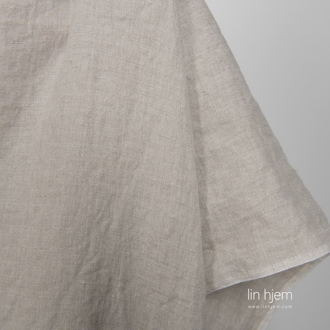 Naturlig farget vasket linstoff. Spesielt vasket med ny teknologi som gjør dette stoffet mykt, skånsomt og gir ujevn overflate. Krymper ikke. Tettvevd, holdbart, lett.