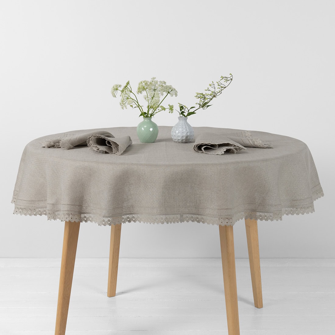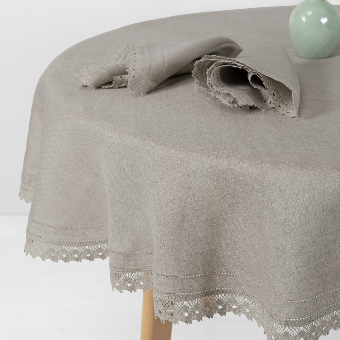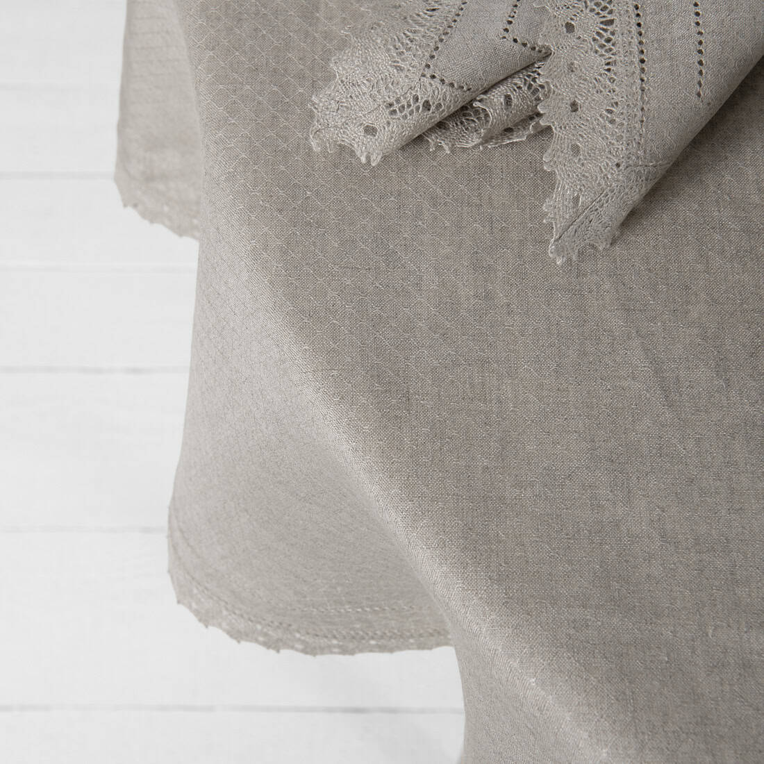 - Kant type: 2 linjer i hullmønster og vakre blonder i lin