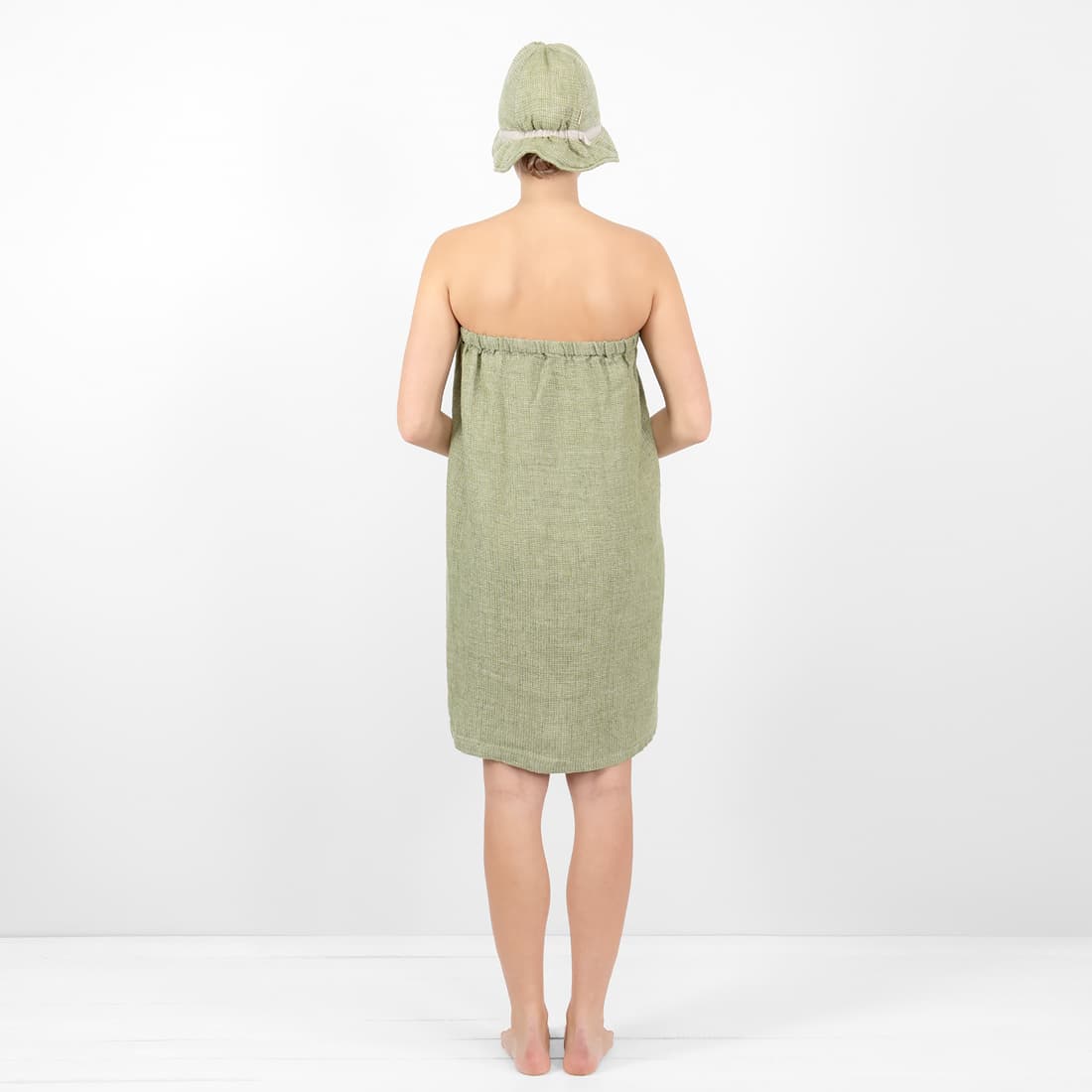 - Farge: vevd bregnegrønt og naturlig (ufarget, brungrått) garn, melange