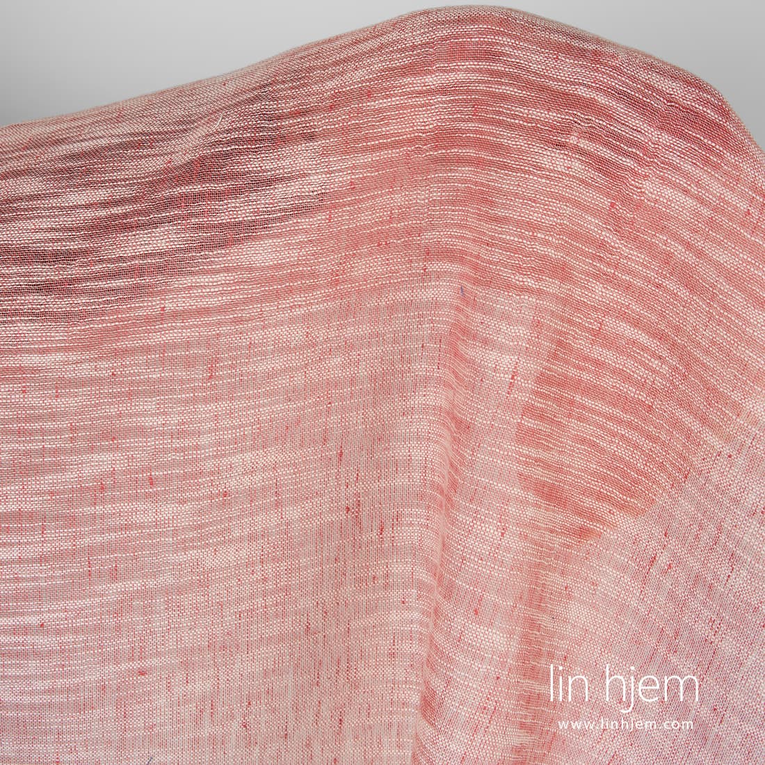• Rødaktig lin-bomulls stoff i hvite striper.