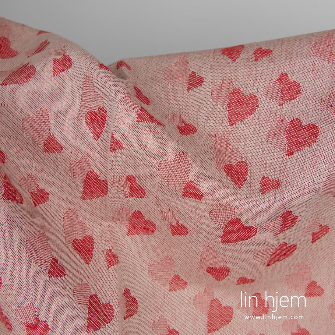 Rødt halvlinstoff med små hjerter