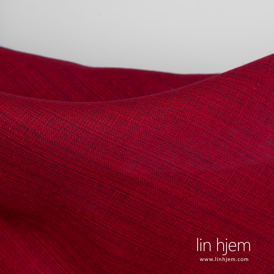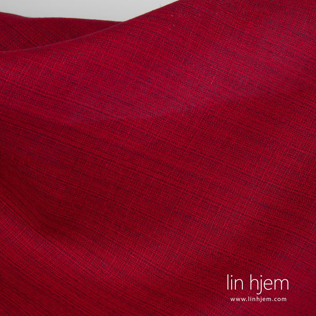 Rødt melange linstoff. Stoffet ble vevd av intens røde og lilla garn. Tettvevd, holdbart, middels tykkelse. Passer best til å sy klær og hjem tekstil produkter.