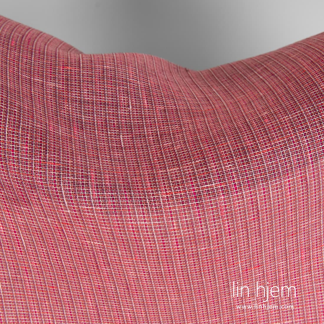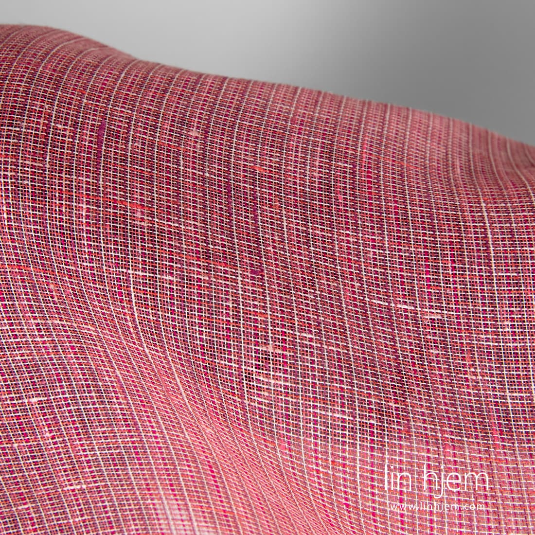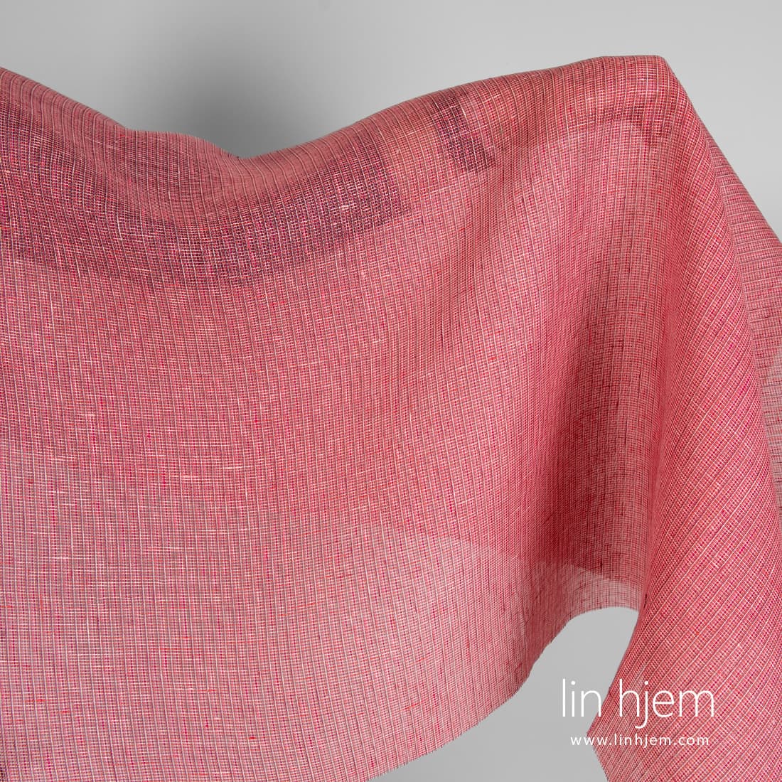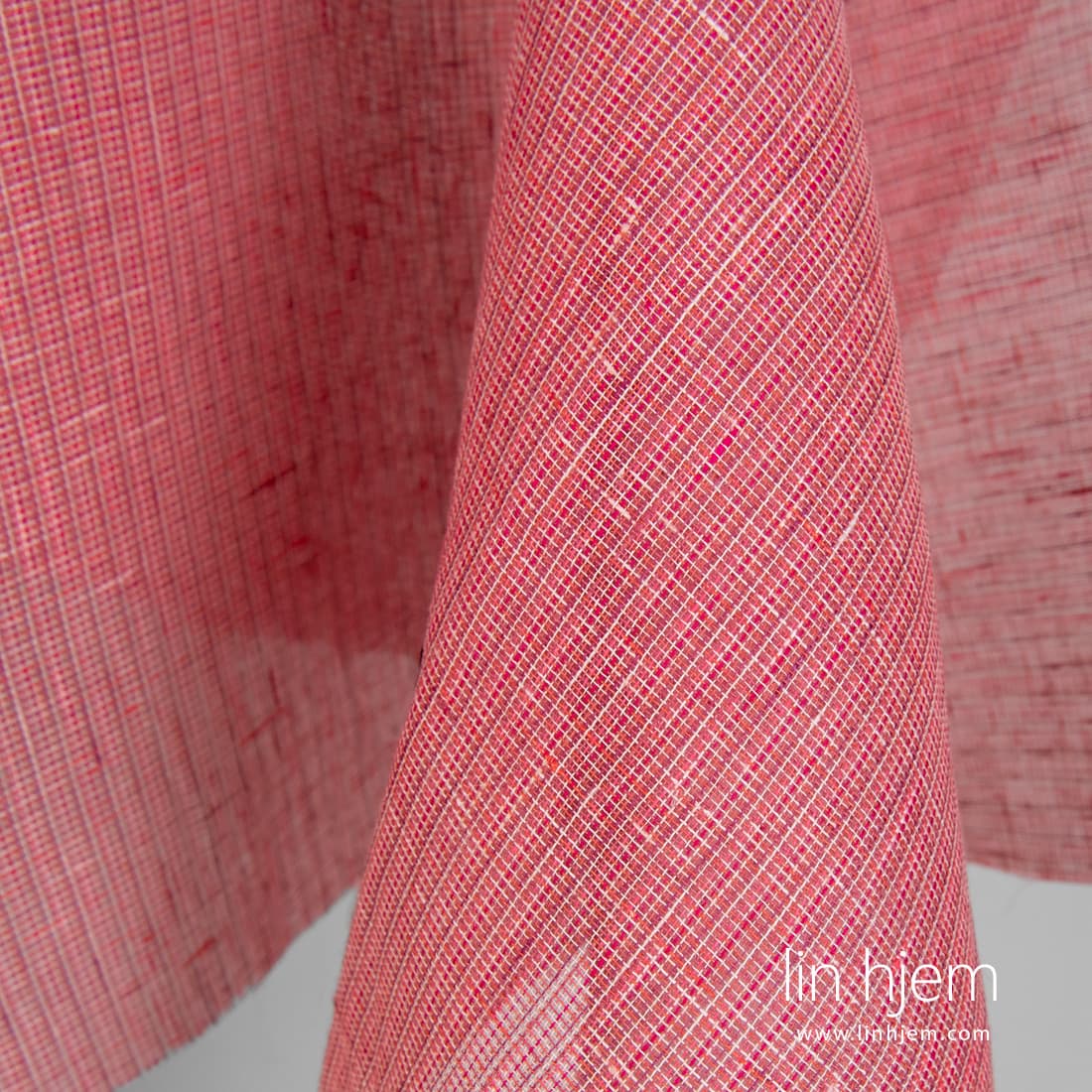 Rosa rutete gjennomsiktig linstoff vevd av flere nyanser av rosa garn. Nyanser fra lys pastell rosa til lys fuchsia farge. Sy gardiner eller skjerf av dette lette 100% linstoffet.