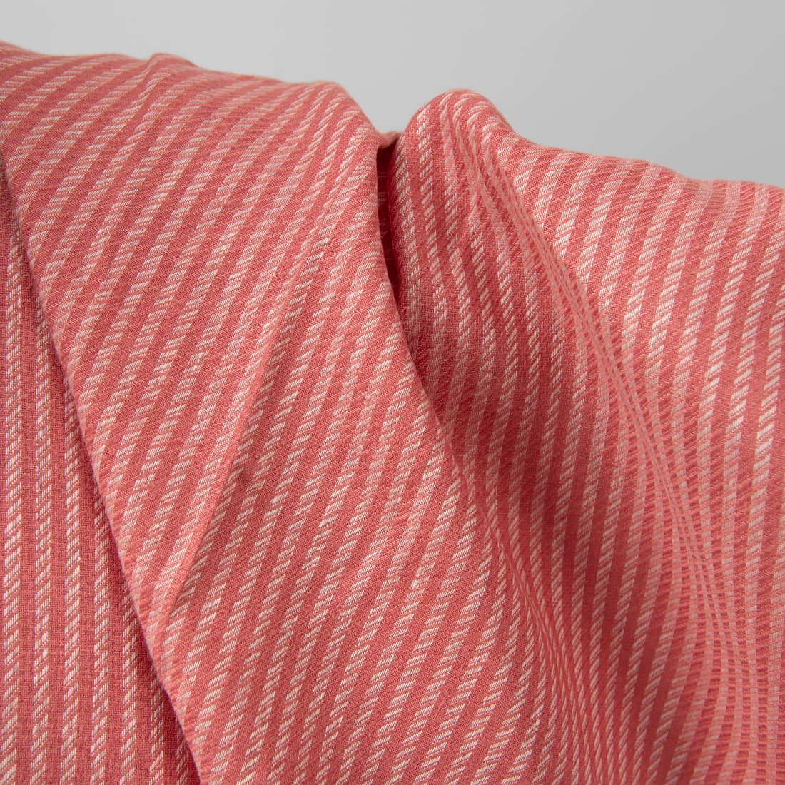 • Rosa stripete linstoff for å sy klær og hjemmetekstiler