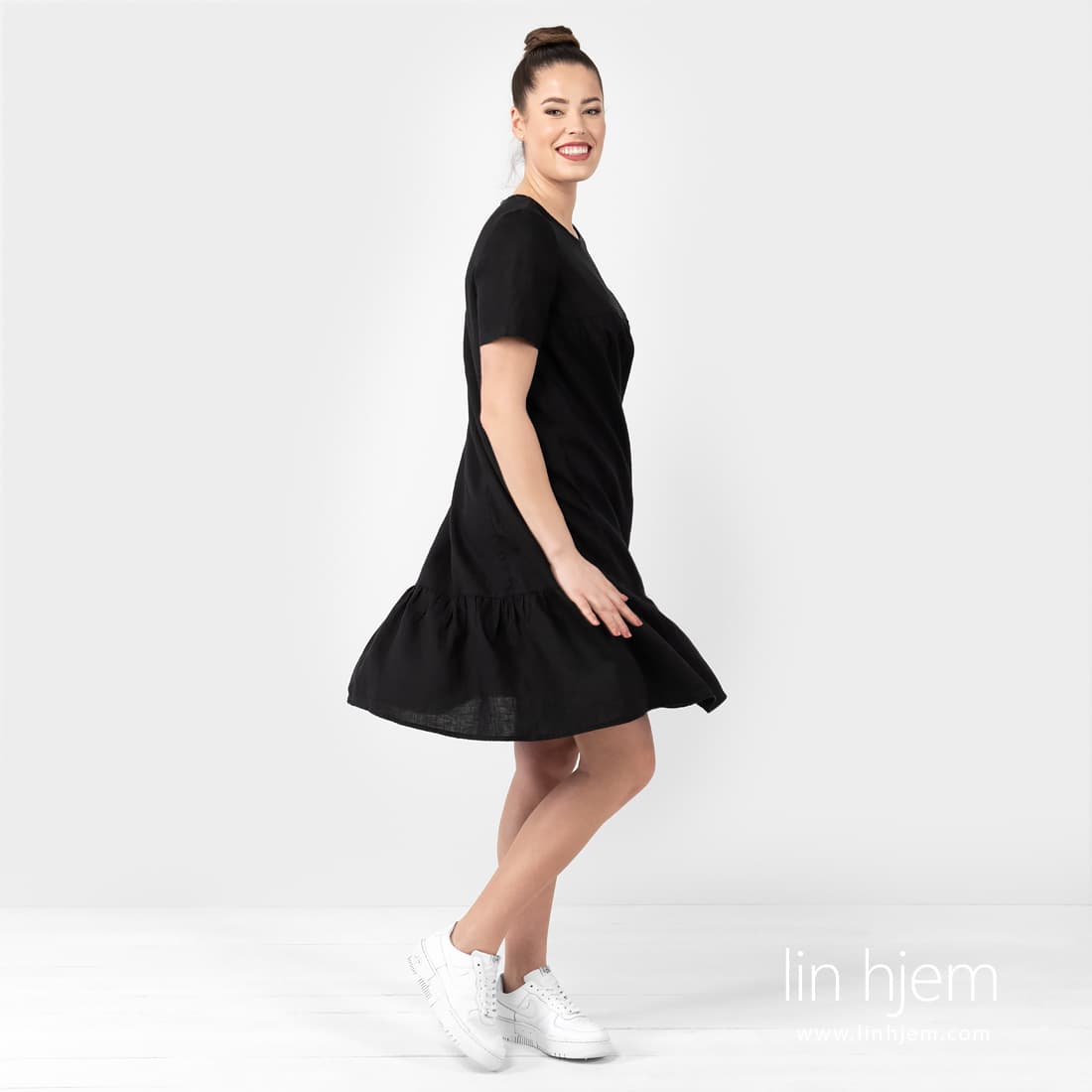 - Detaljer: korte ermer, lommer, rynket under brystet og på bunnen
