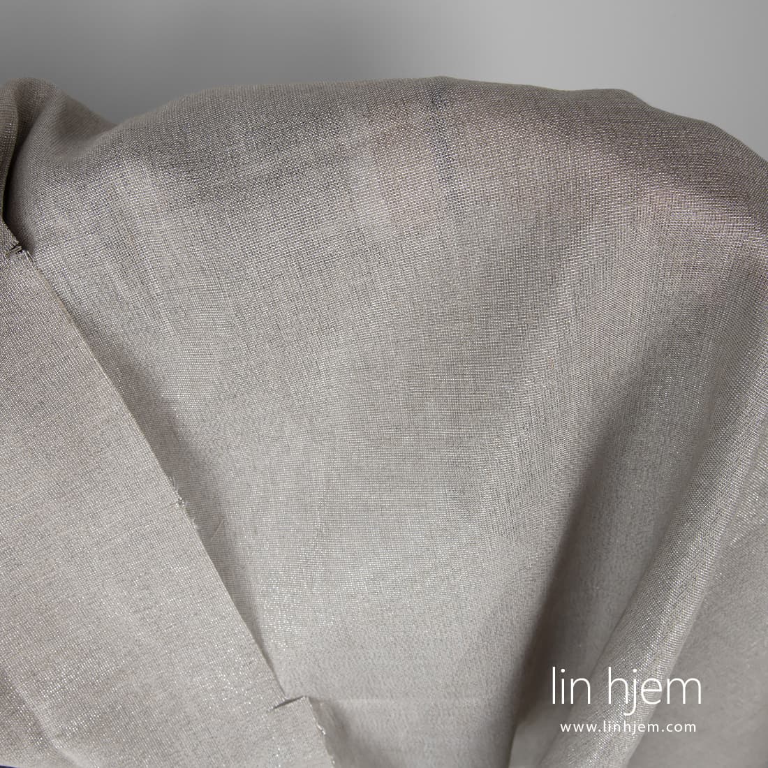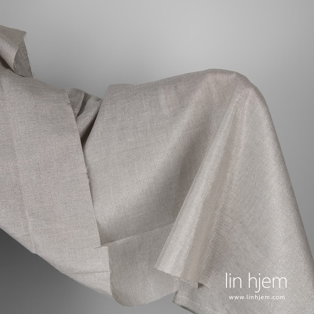 - Farge: vevd fra naturlig grå (ufarget) lingarn og sølv polyester tråder, melange