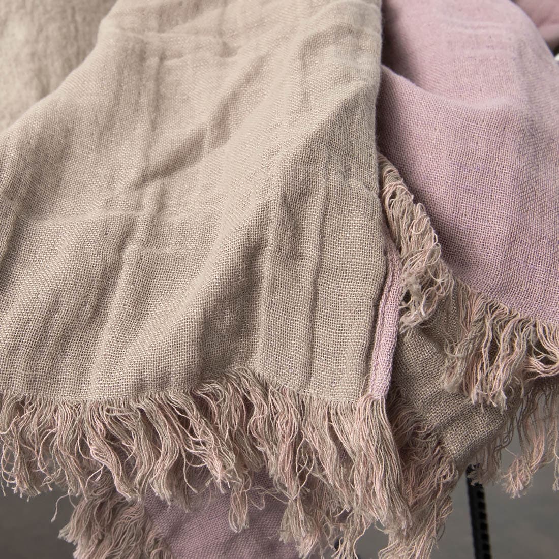 - Farge: blanding av beige lin (nær naturlig lin), pastellrosa, lys kakao og syrinfarget garn