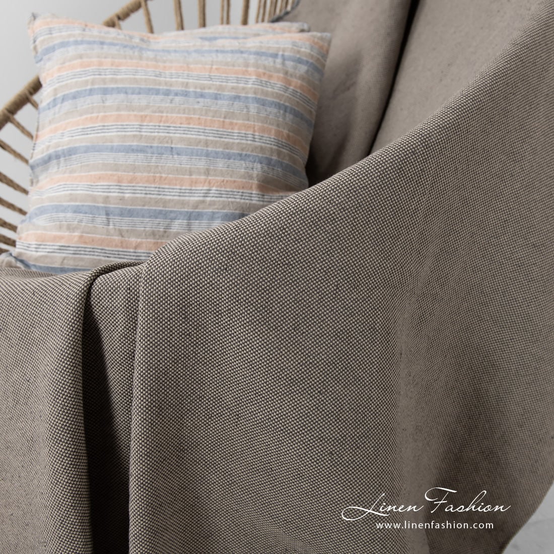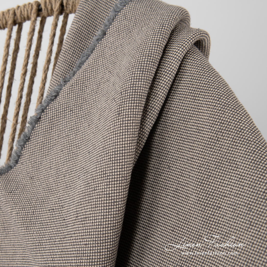 - Farge: blanding av brungrå (nær naturlig lin) og antrasittfargede garn