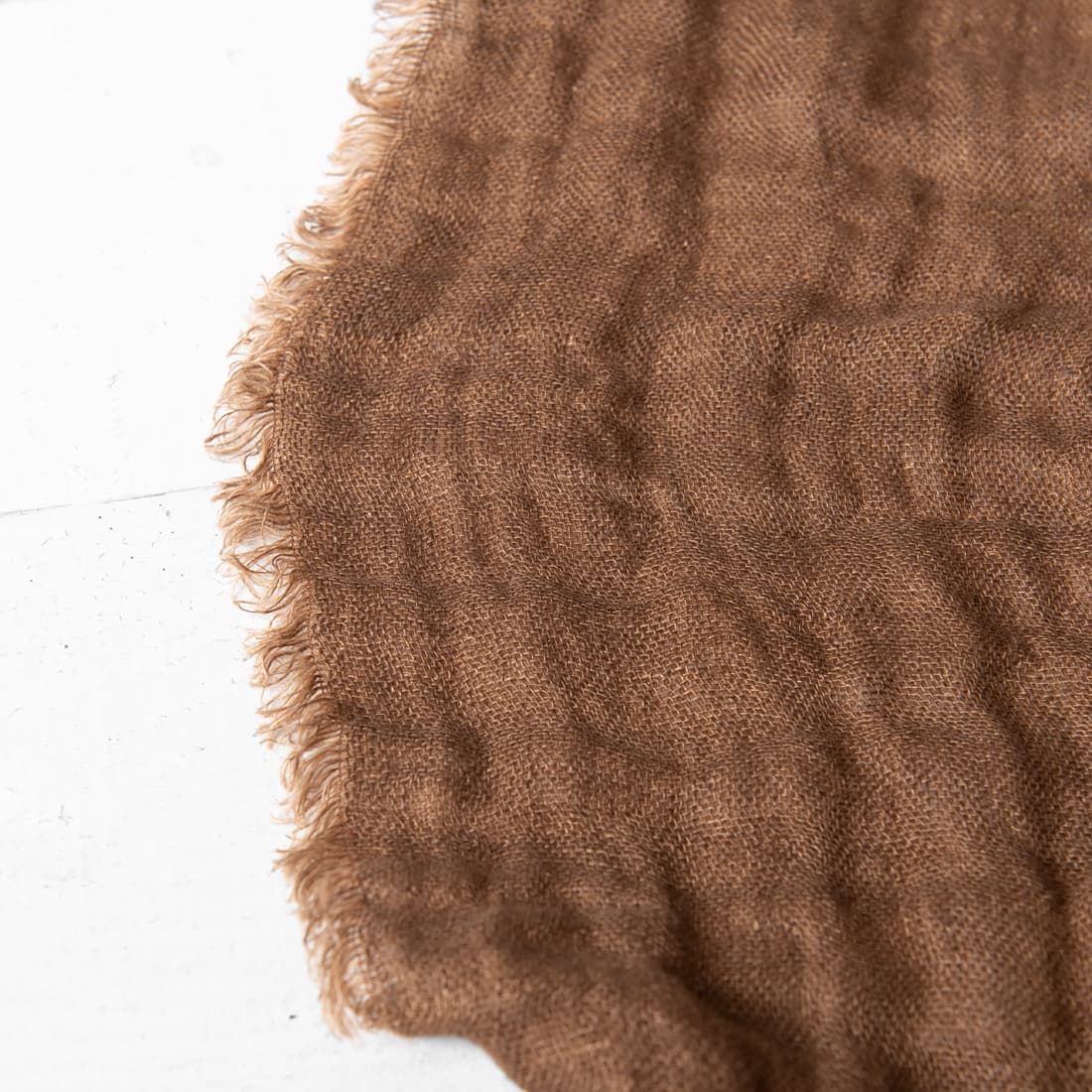 - Farge: blanding av sjokoladebrunt og nøttebrunt garn