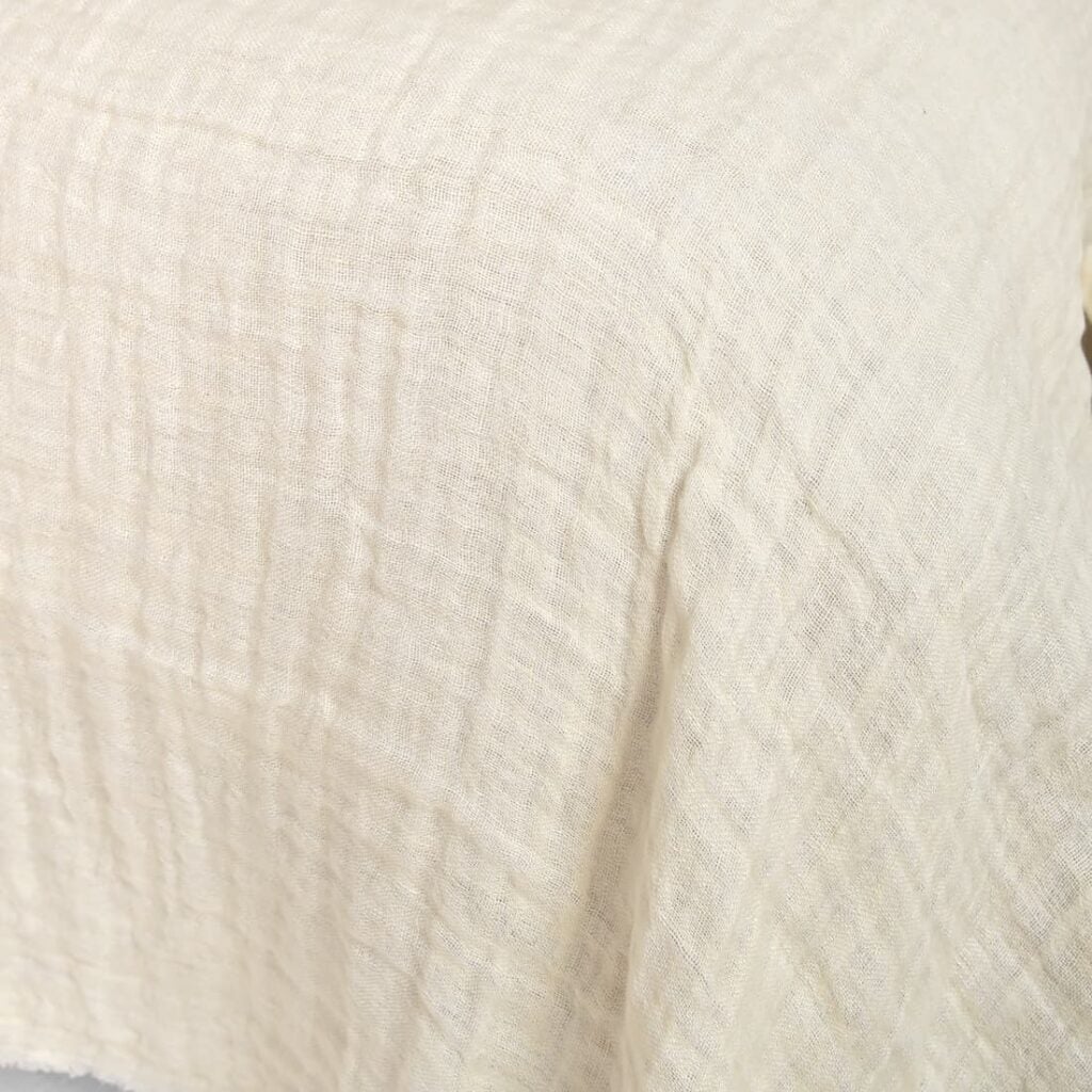 - Farge: blanding av optisk hvit og vaniljefarget garn