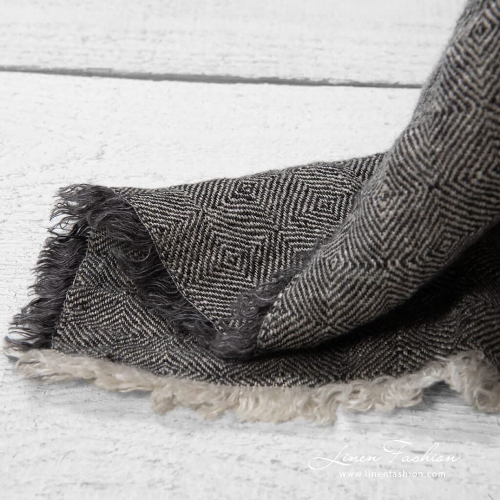- Farge: blanding av mørk grafittgrå og naturlig lin (ufarget, brungrå) garn