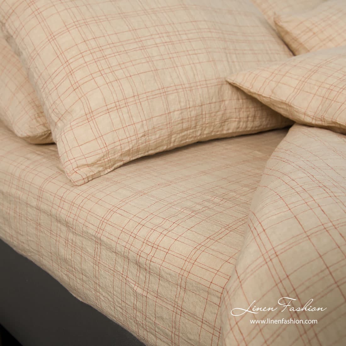 - Mønster: rutete laken, dynetrekk og putetrekk