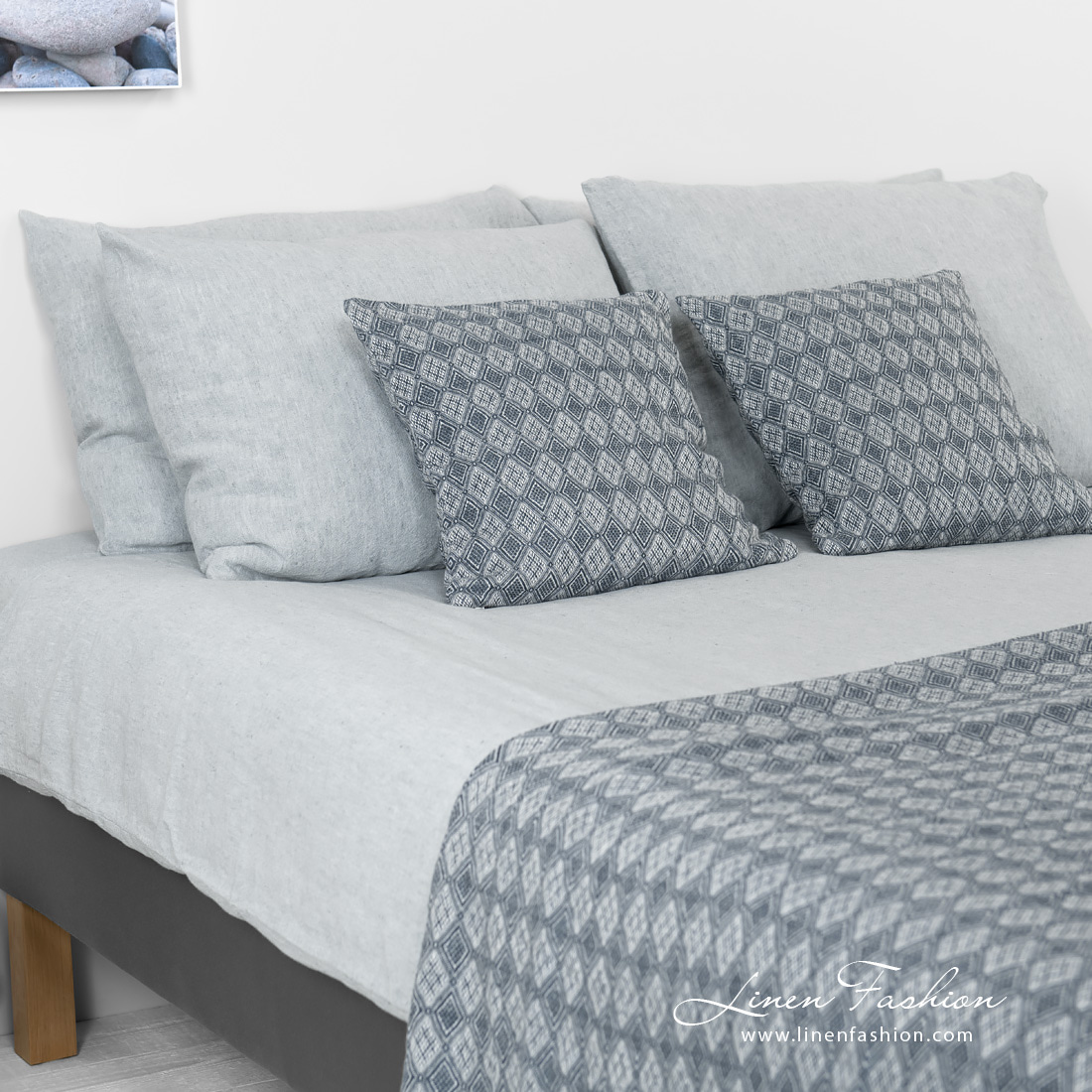 - Mønster: ensfarget melert laken, dynetrekk og putetrekk