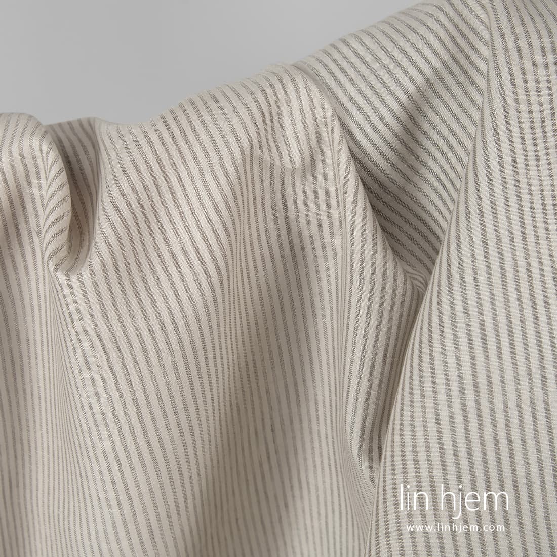 Stripete brunaktig linstoff vevd av kakao og gråaktig brune lingarn. Lysere striper er mer tettvevde enn mørkere striper. Dette linstoffet er holdbart, middels tykkelse derfor passer til å sy klær, gardiner, duker, servietter.